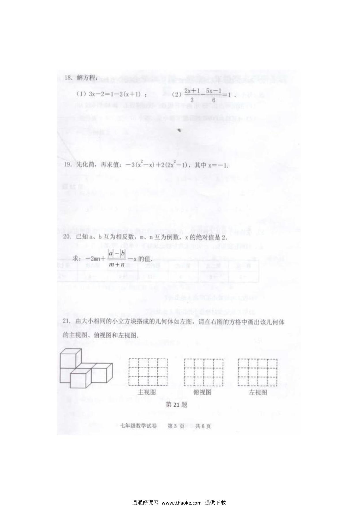 淮北市2019年第一学期七年级数学期末试卷及答案