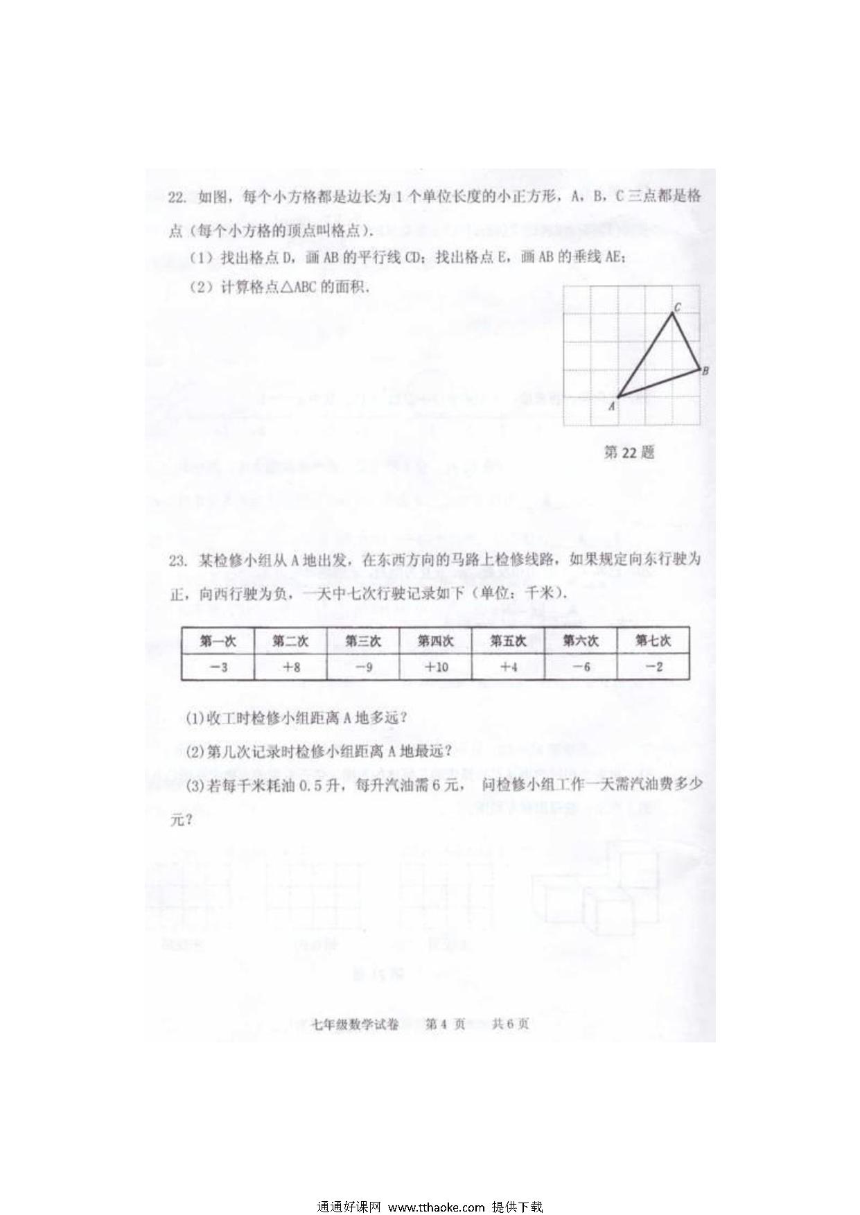 泗阳县第一学期七年级数学期末调研试卷及答案