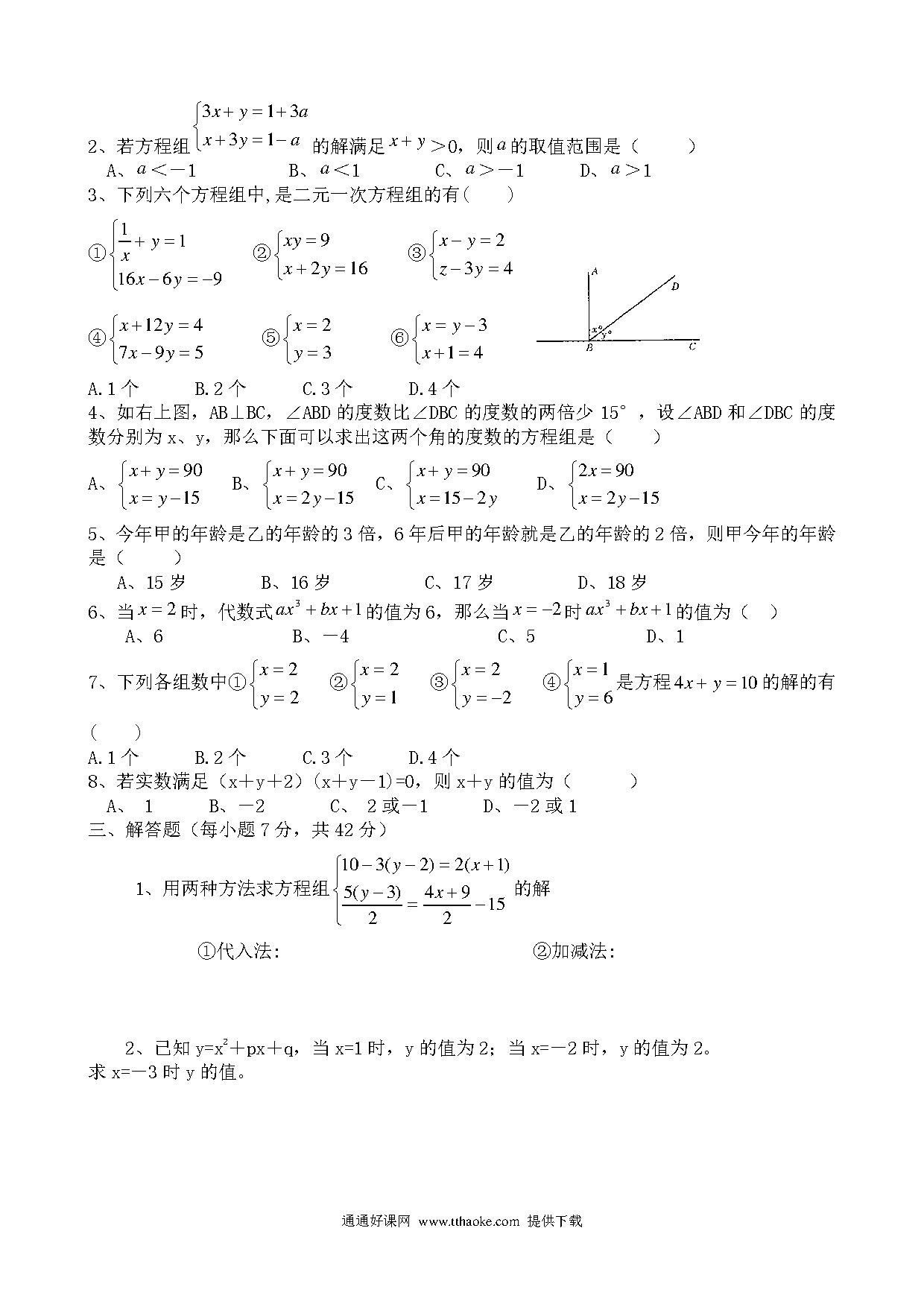 淮北市2019年第一学期七年级数学期末试卷及答案