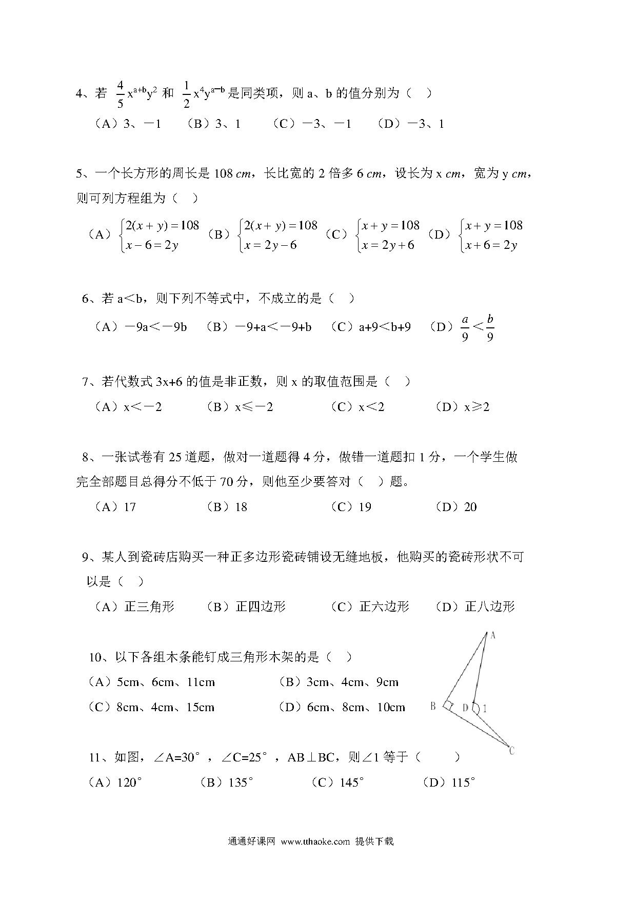 七年级数学下册期中考试试题5.pdf (231.85KB)