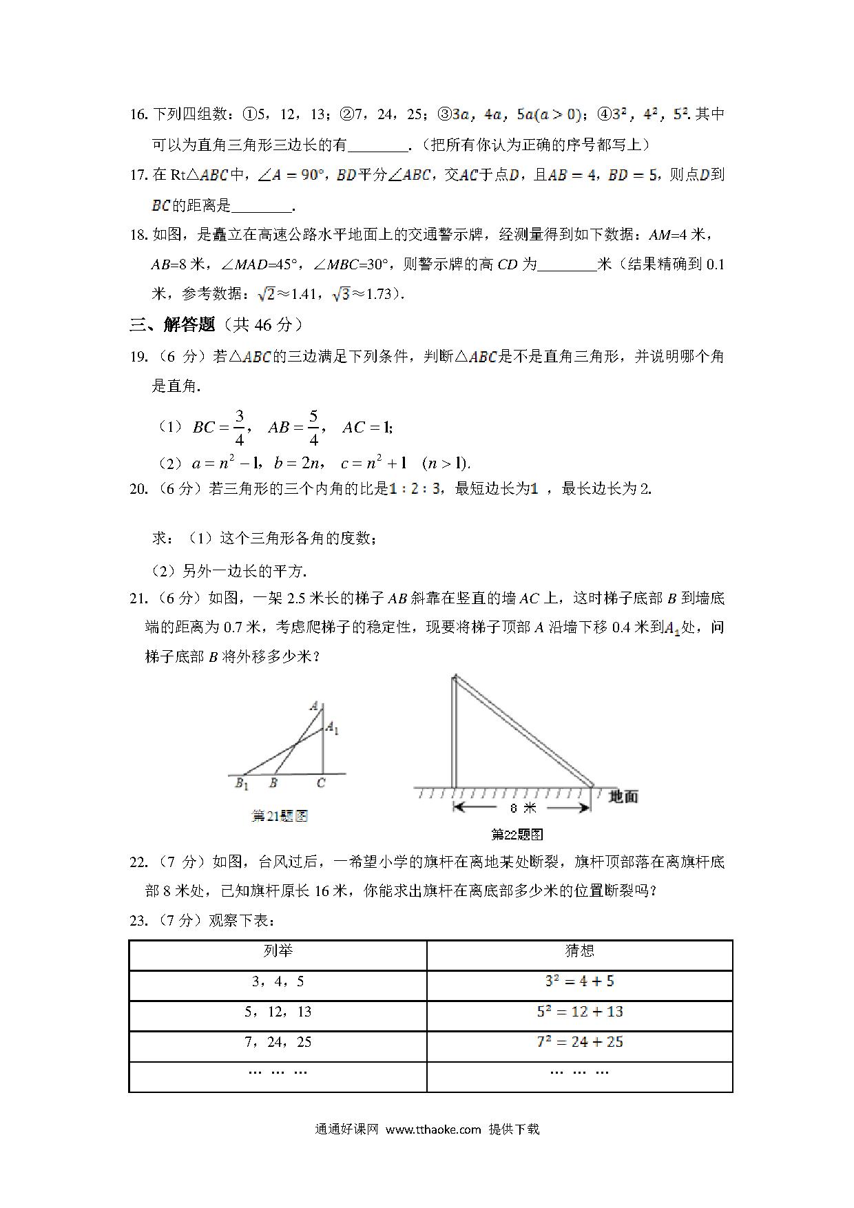 教材全解人教版八年级数学下册第17章检测题及答案解析