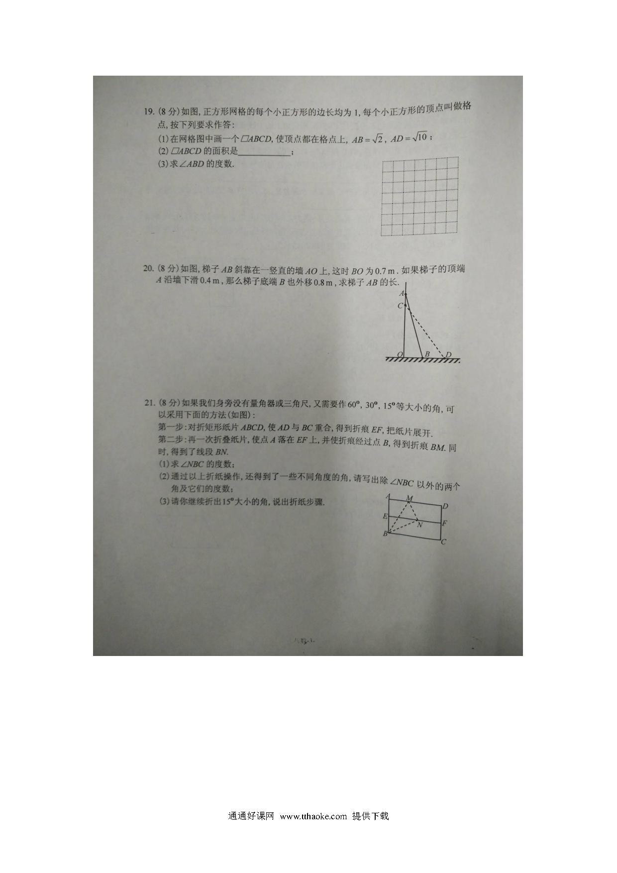湖南岳阳2019年第一学期八年级数学期末试卷及答案