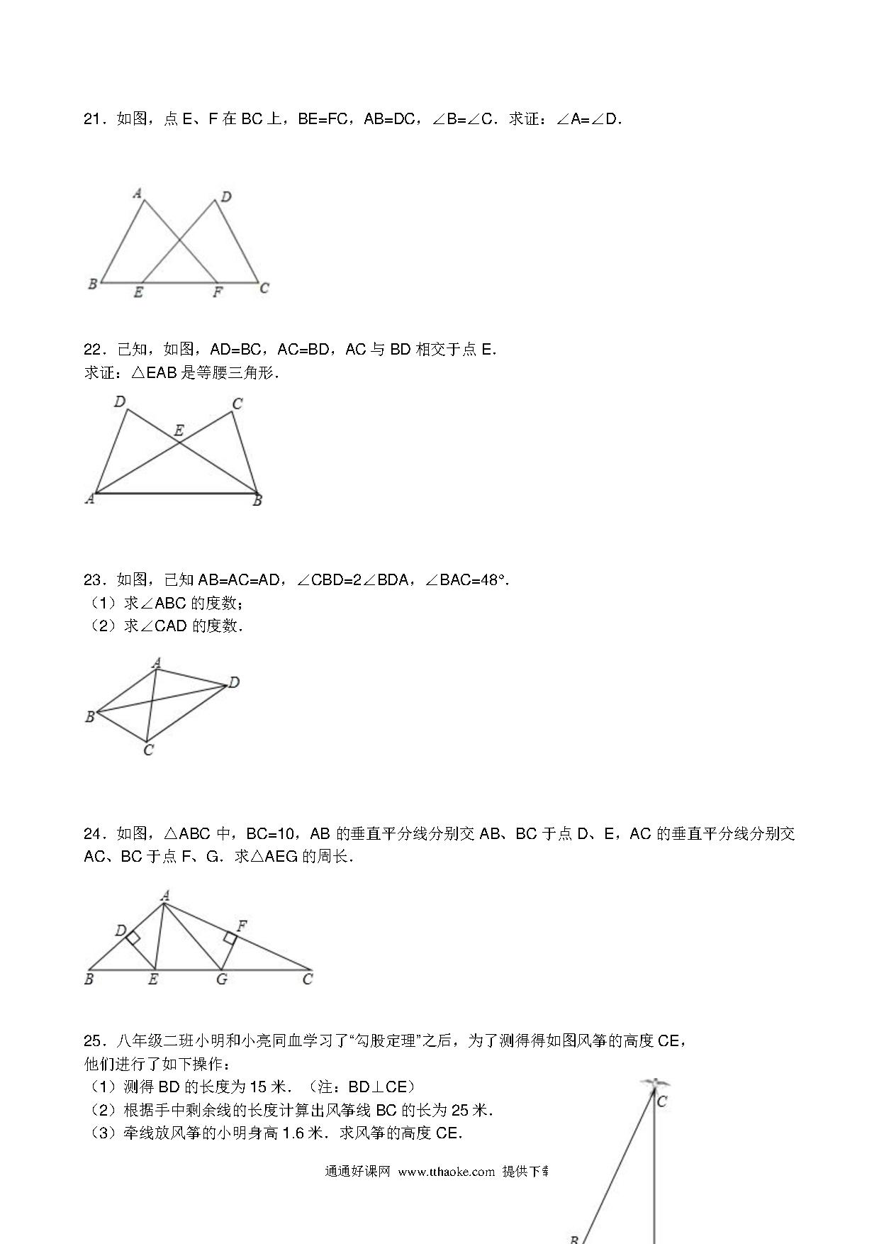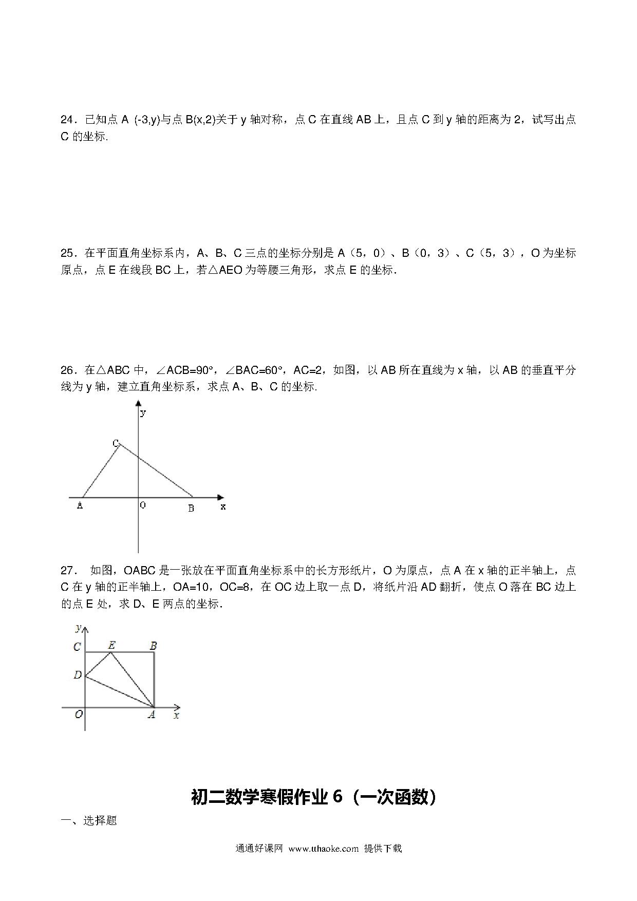 宿迁市苏科版八年级数学上寒假作业(共8份)