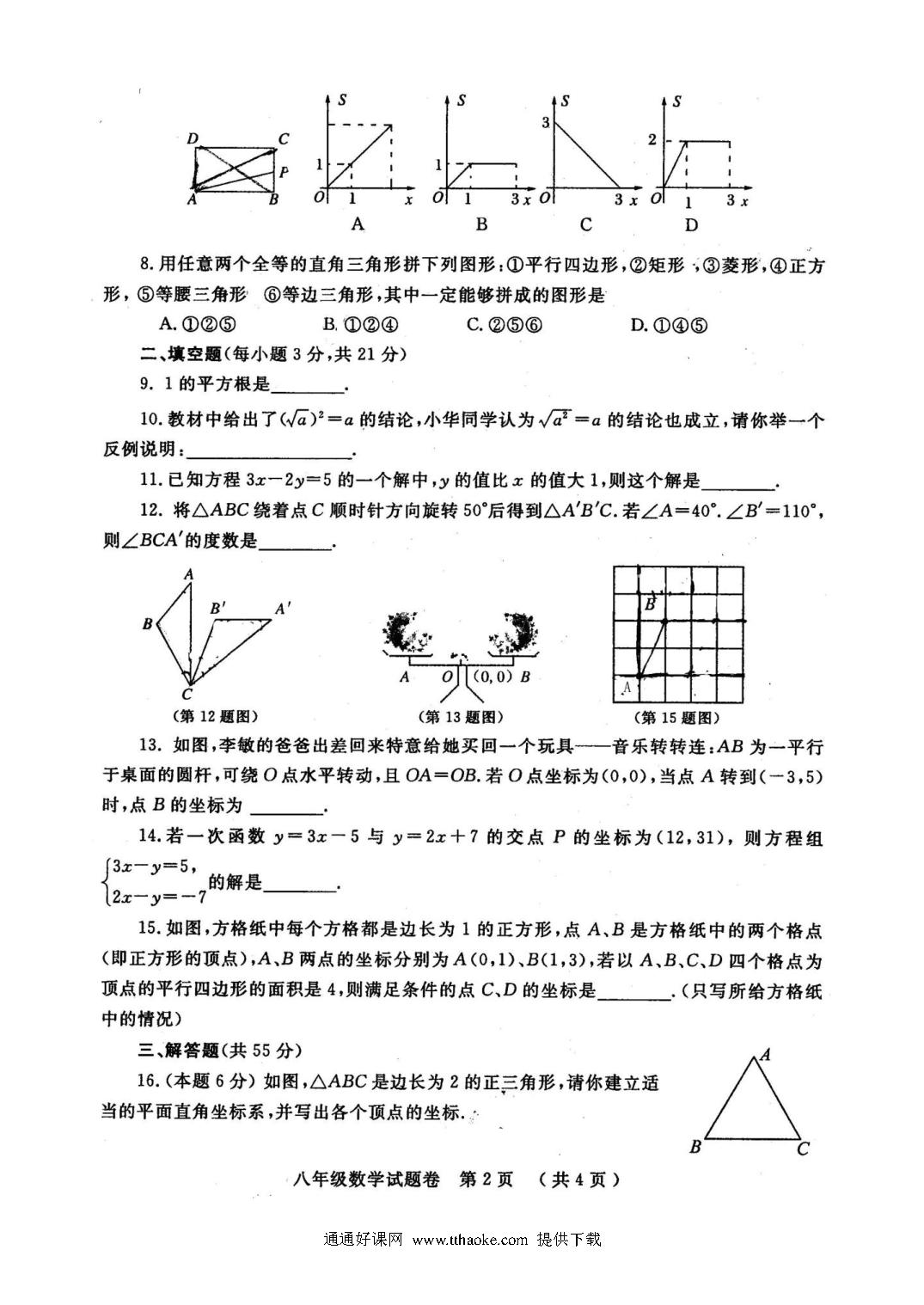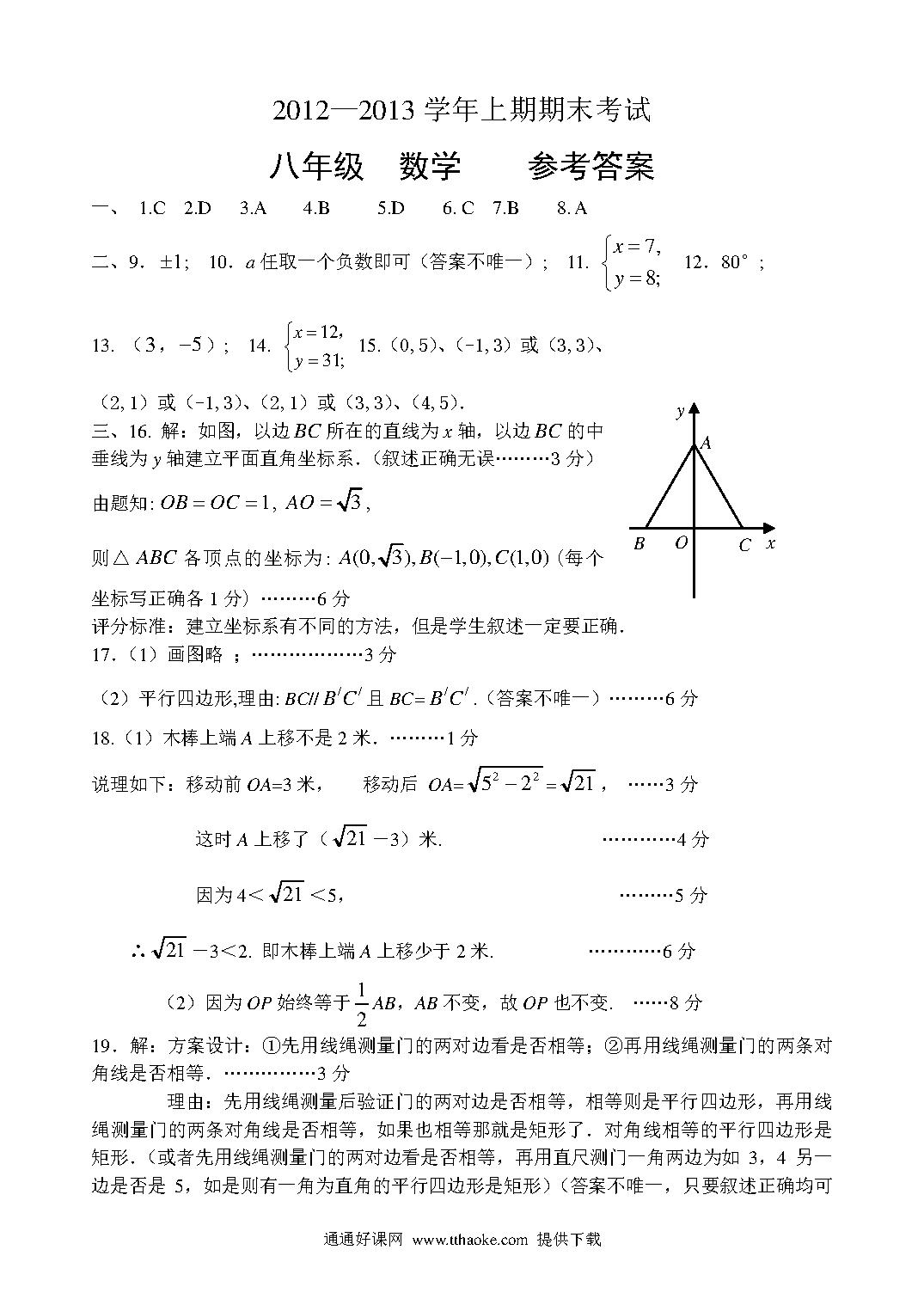 湖南岳阳2019年第一学期八年级数学期末试卷及答案