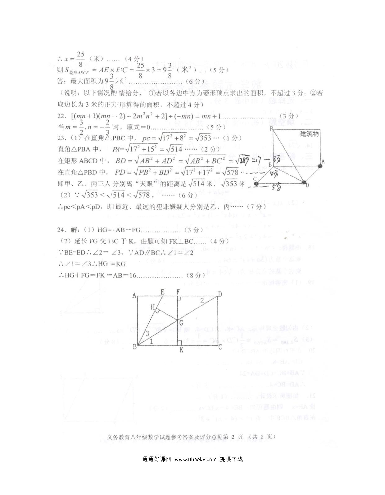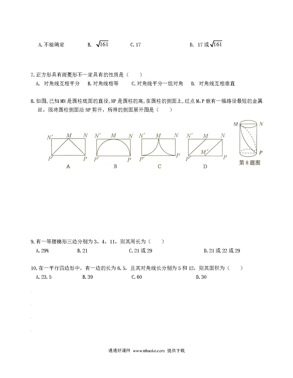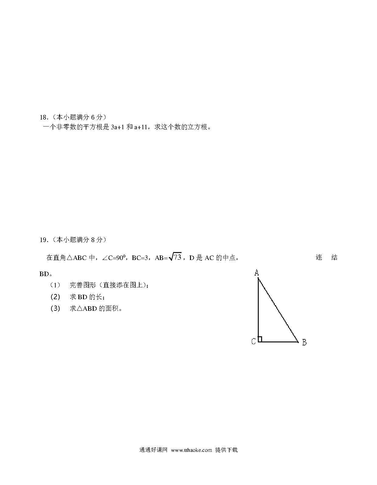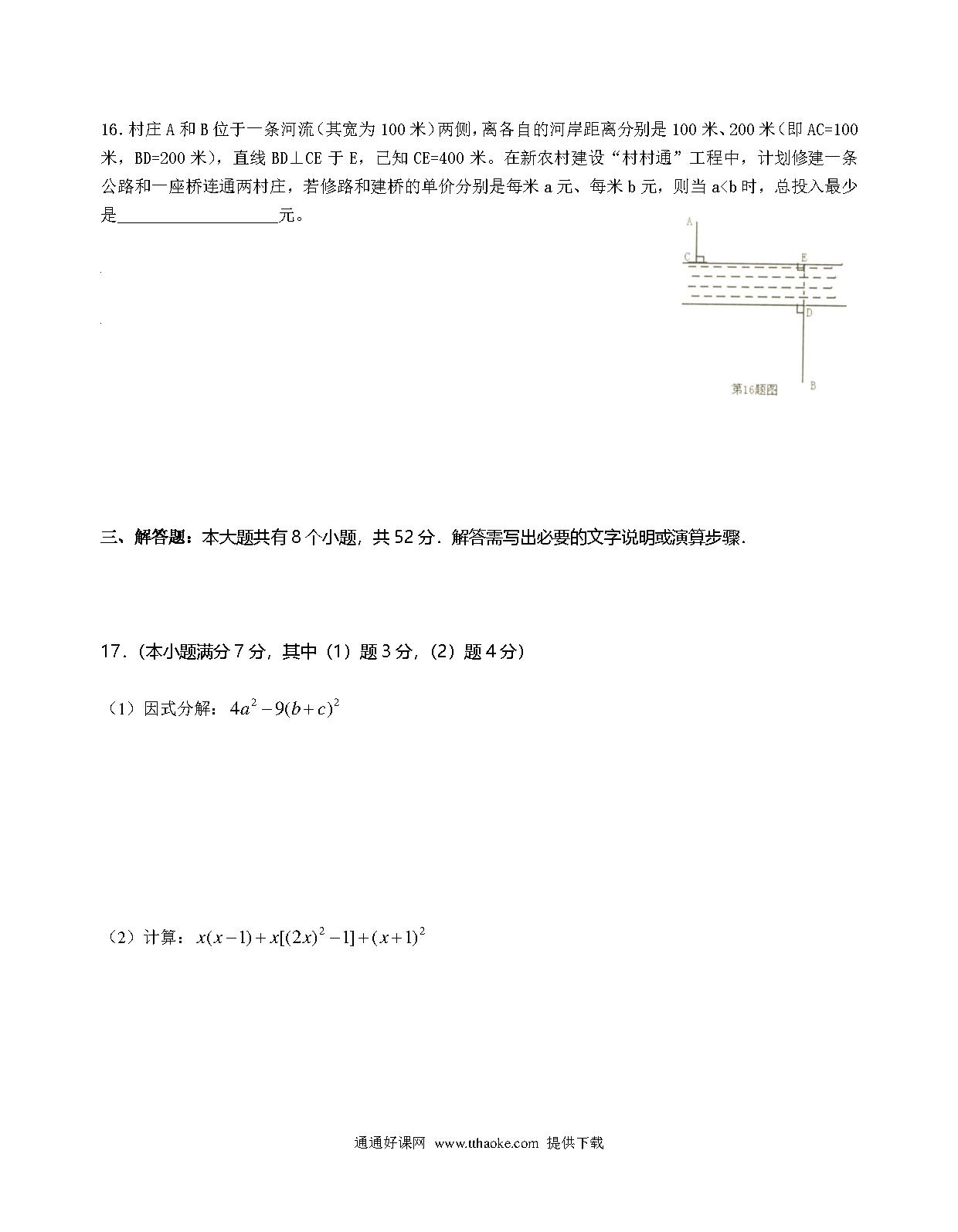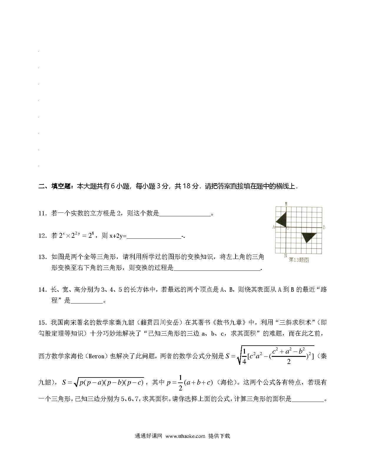 湖南岳阳2019年第一学期八年级数学期末试卷及答案