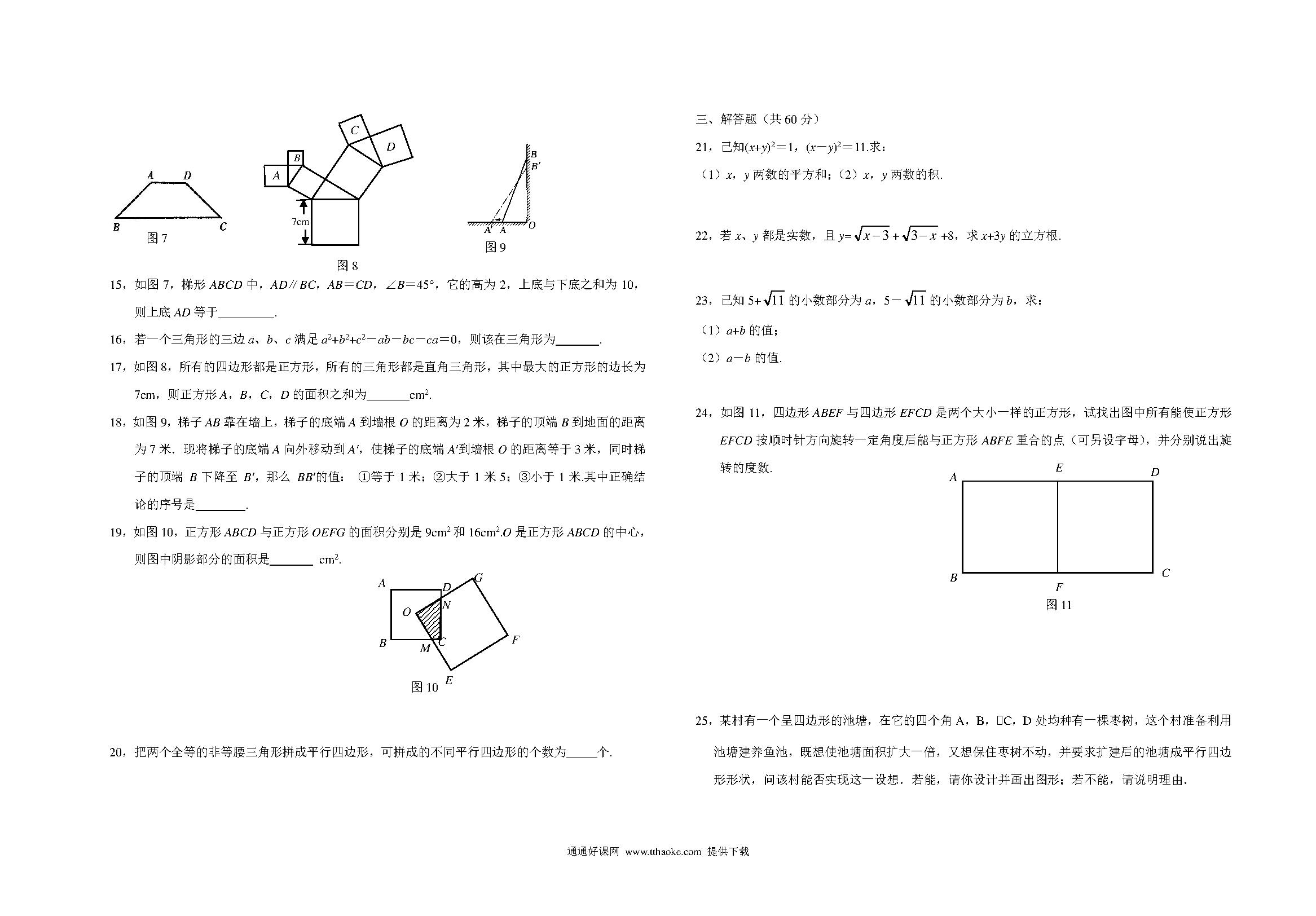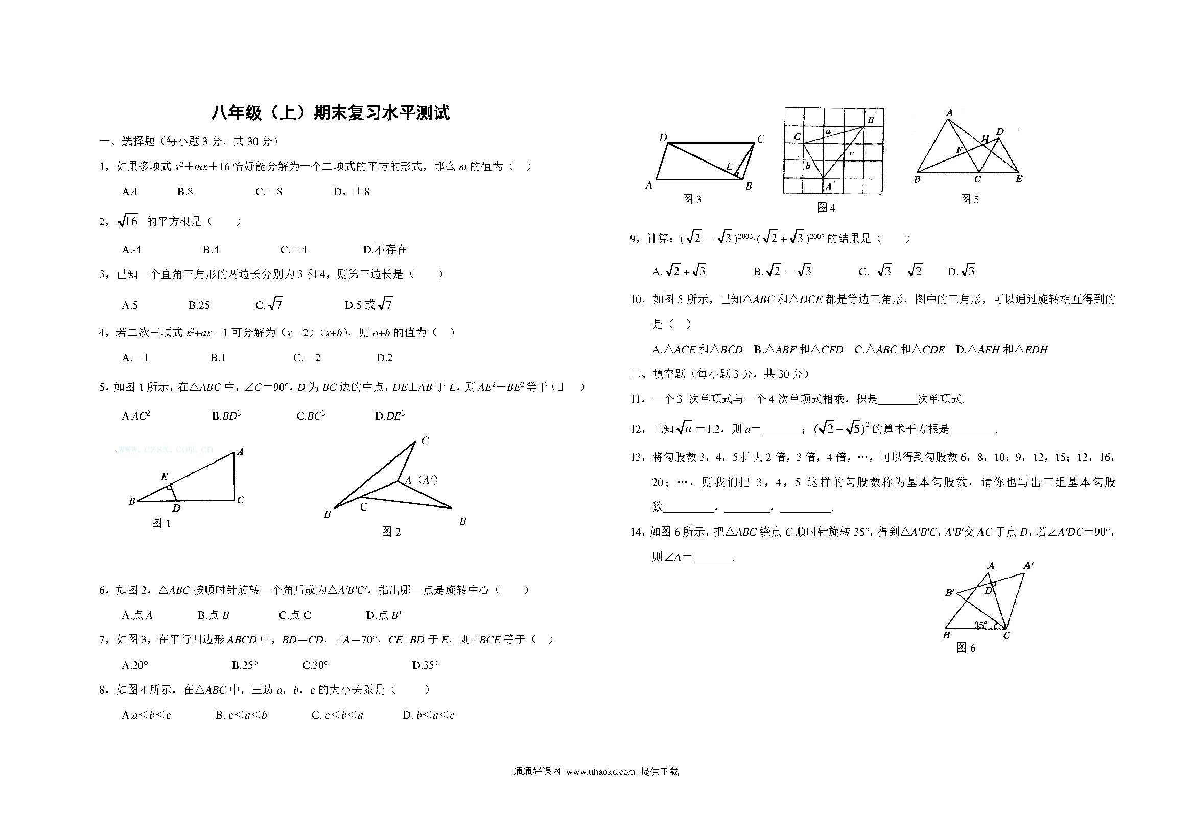 湖南岳阳2019年第一学期八年级数学期末试卷及答案