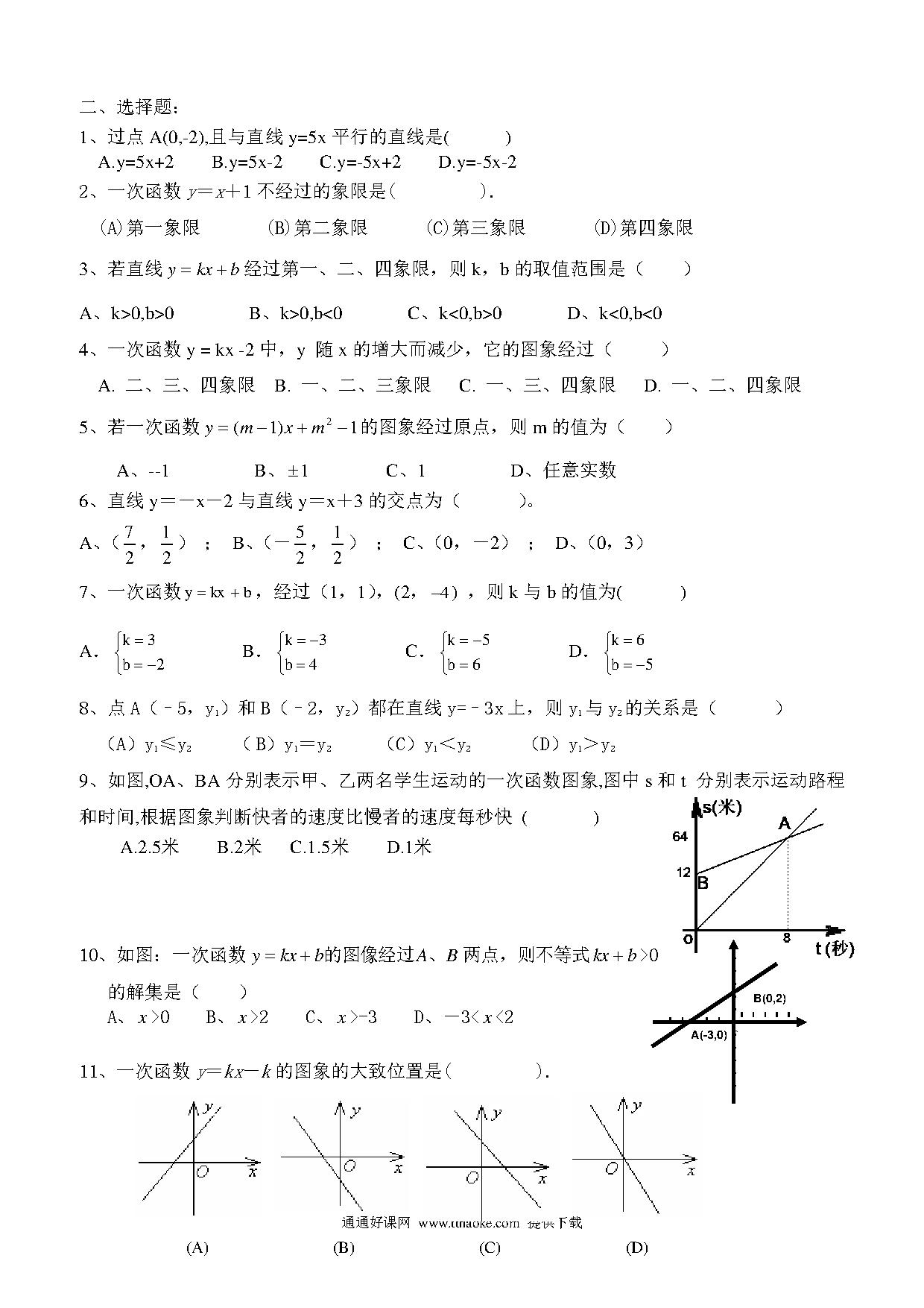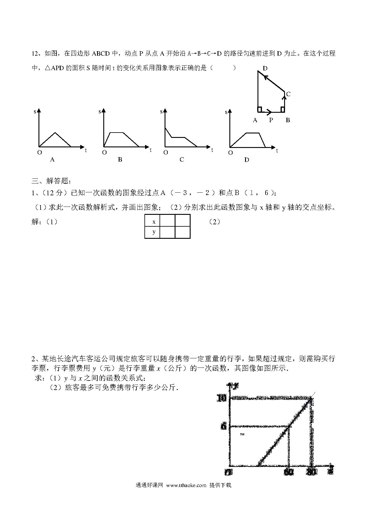 平南四中八年级函数及其图象复习卷【各版通用】