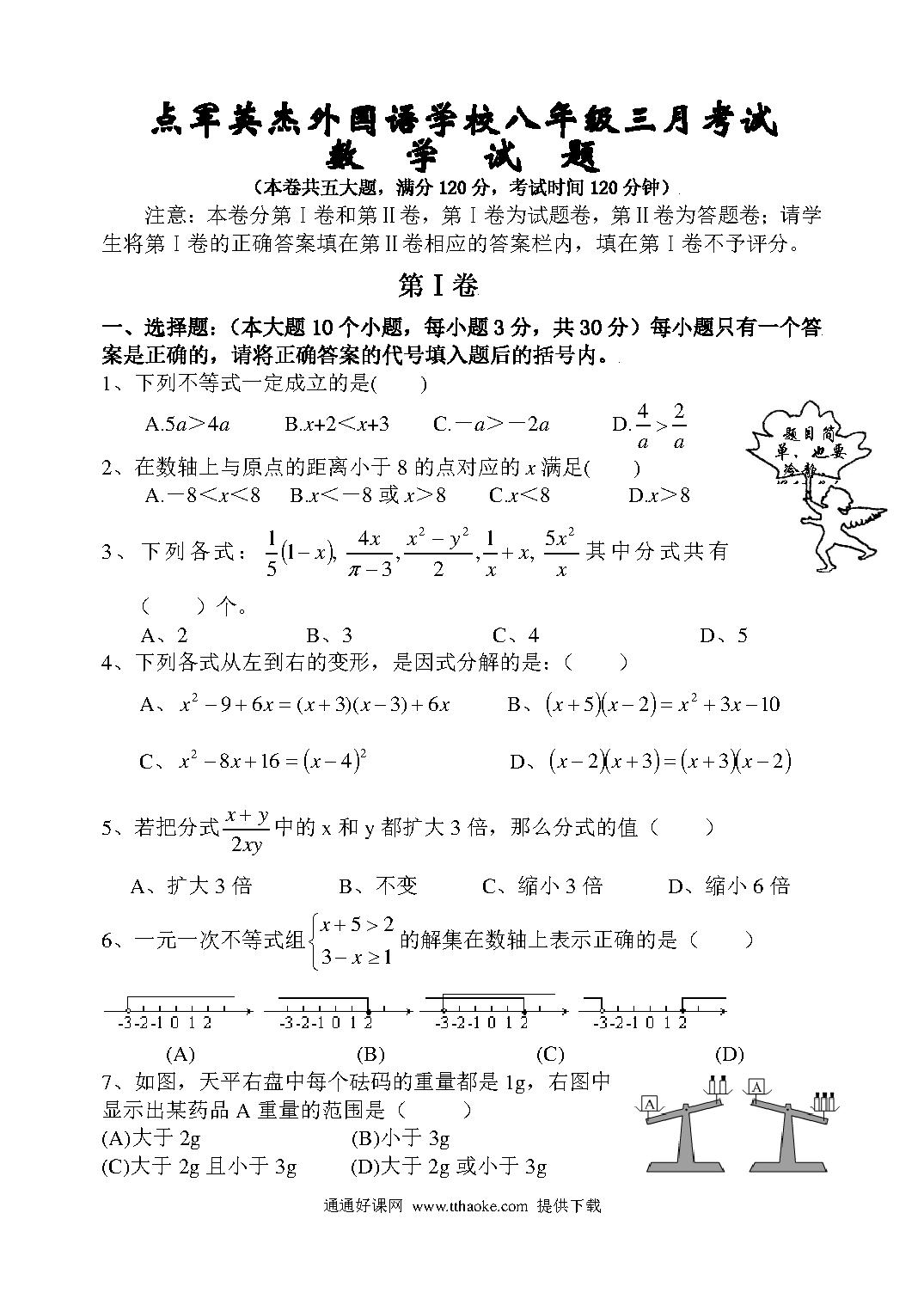 宿州六中八年级下数学测试题第一章一元一次不等式测试题.pdf (148.99KB)