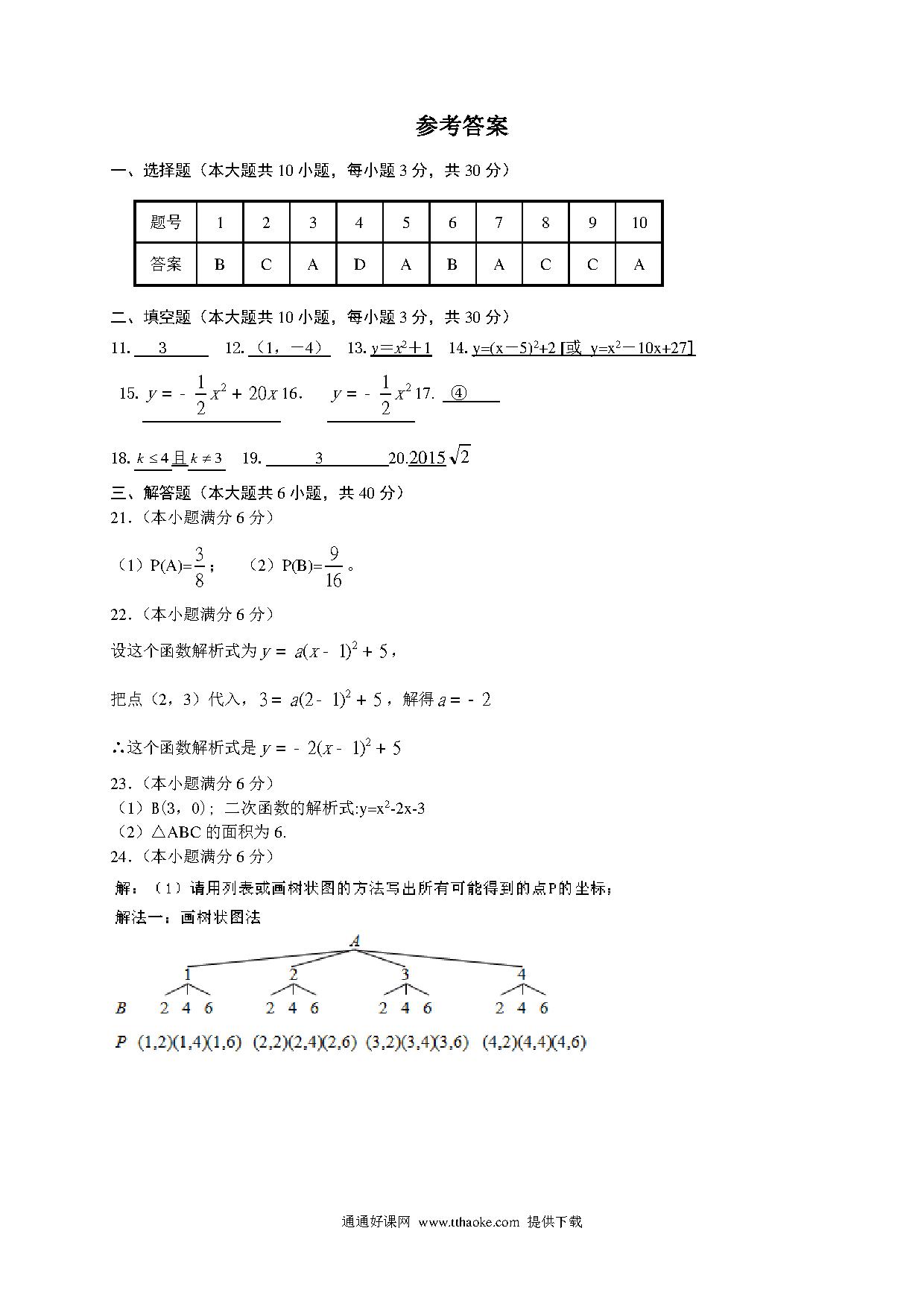房山区初三数学期末试卷及答案