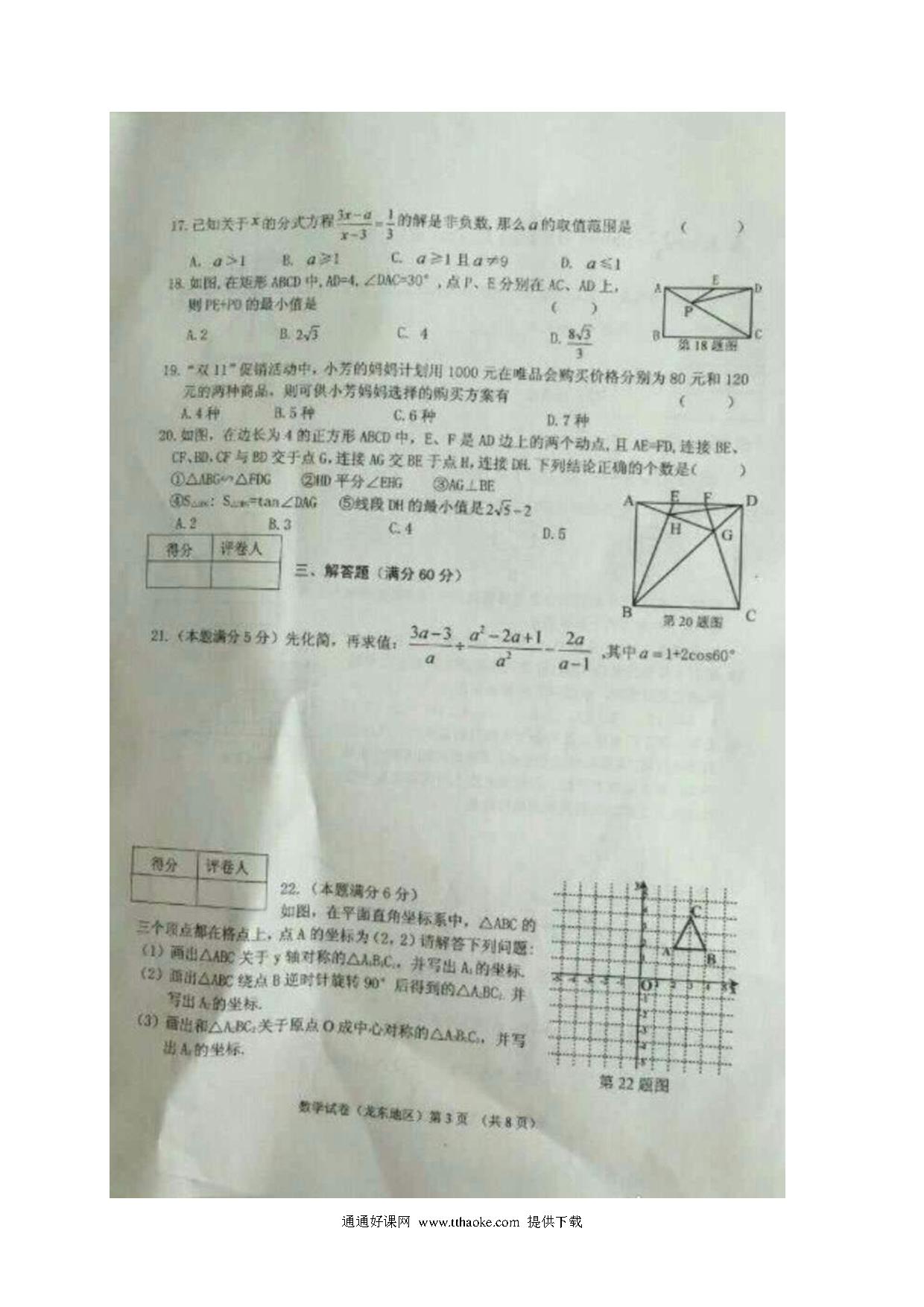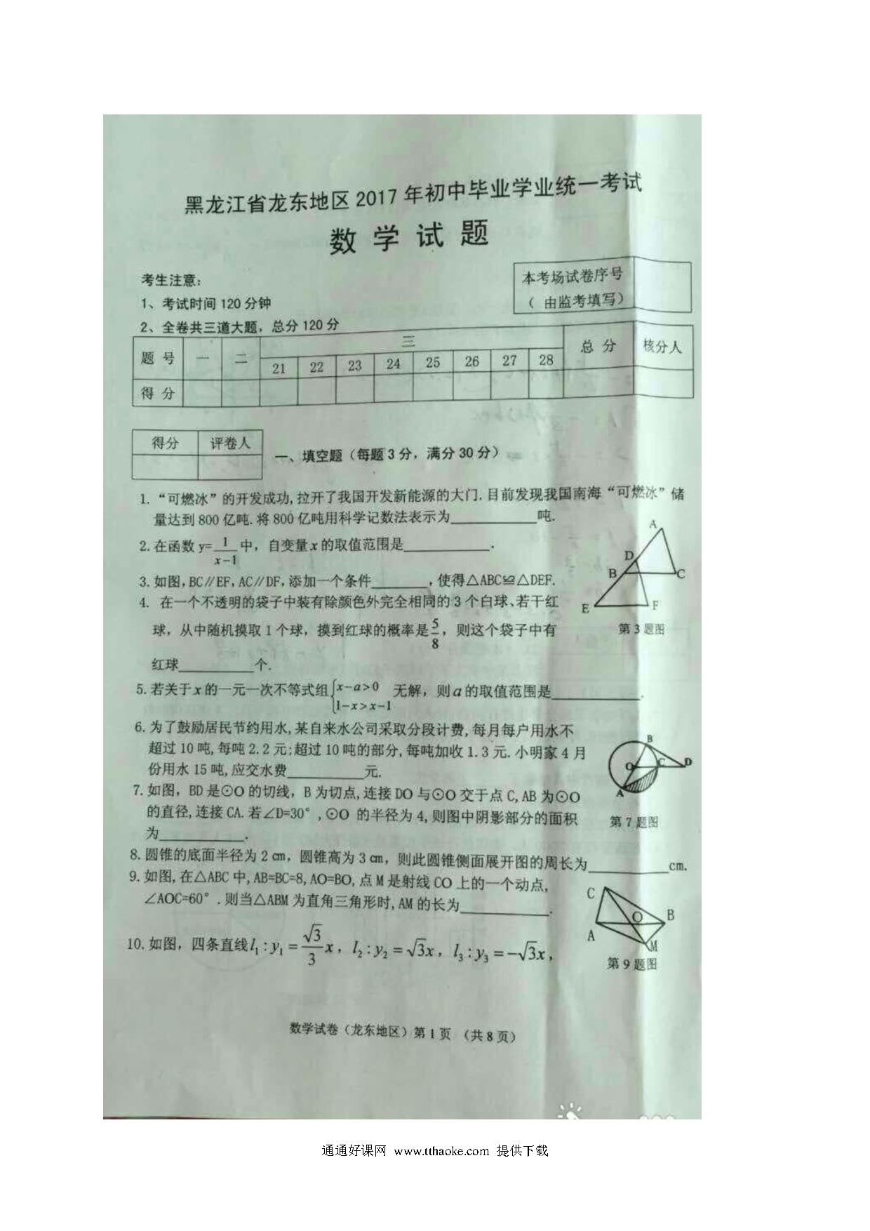 2017年龙东地区中考数学试卷及答案.pdf