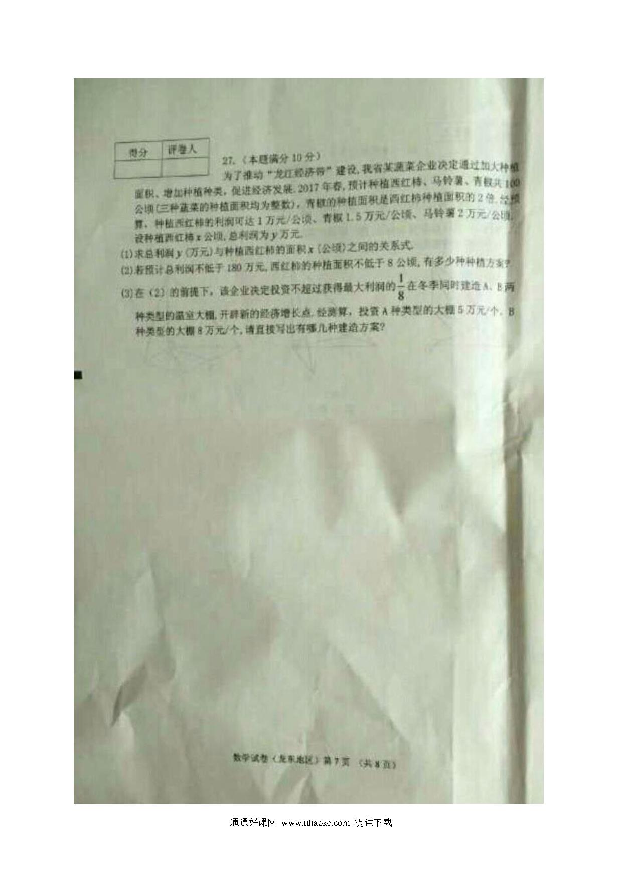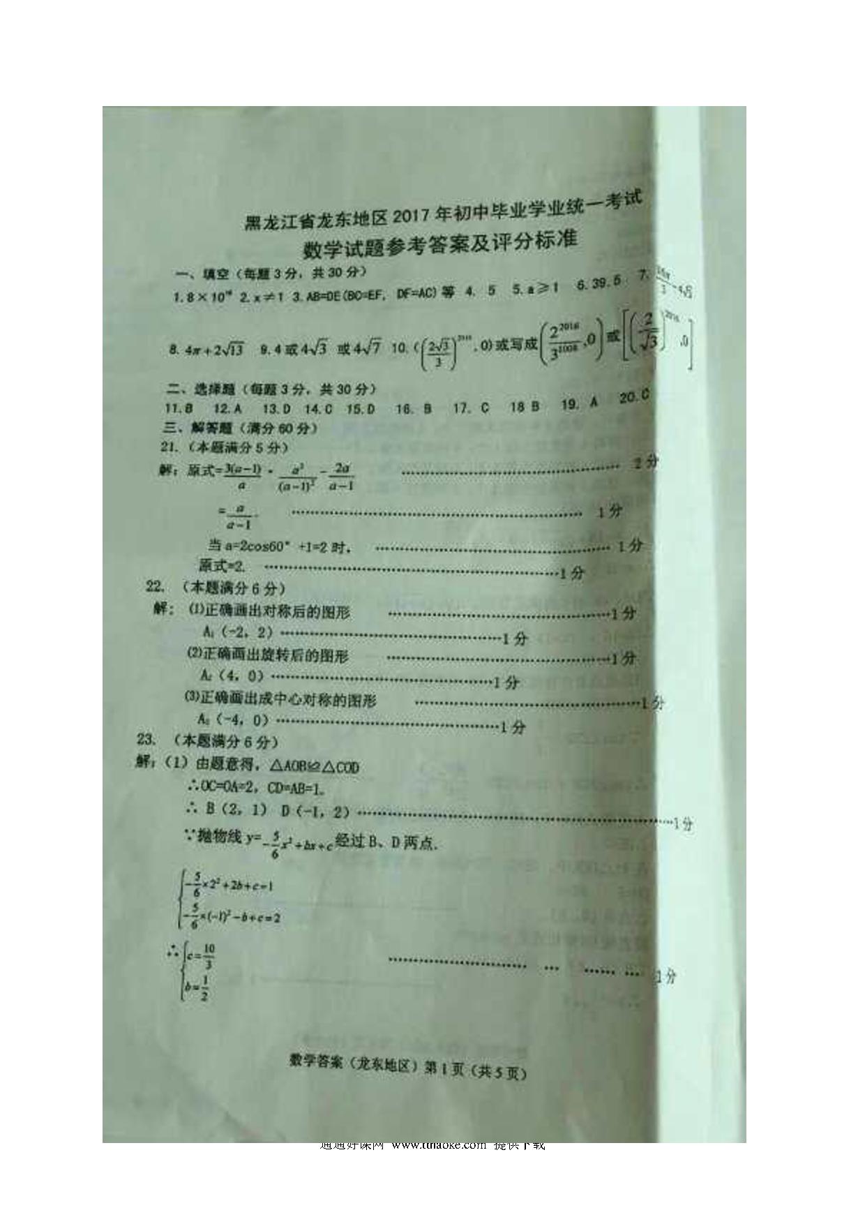 2017年龙东地区中考数学试卷及答案