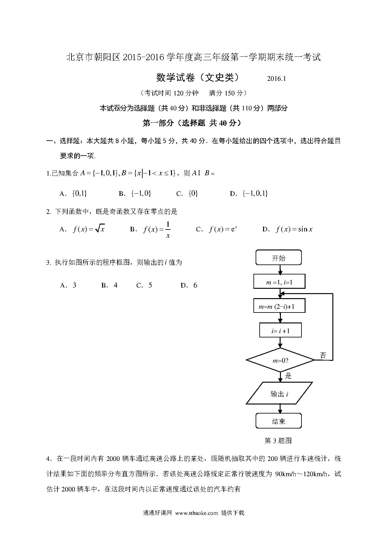 2016朝阳区高三文科数学期末试题及答案.pdf
