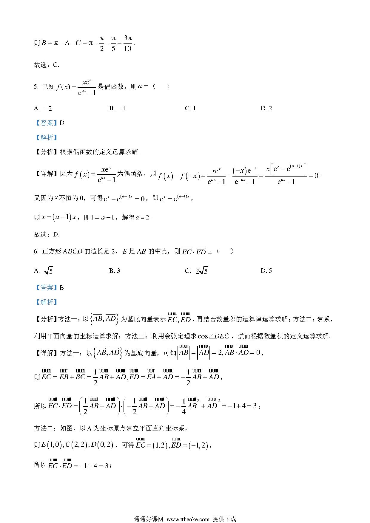 2024天津高考数学试题及答案