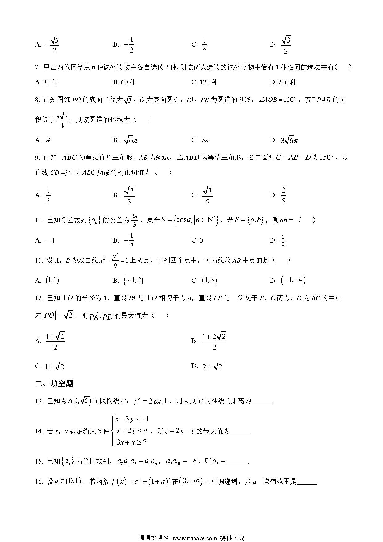 2023年高考全国甲卷数学(文)真题(原卷版)