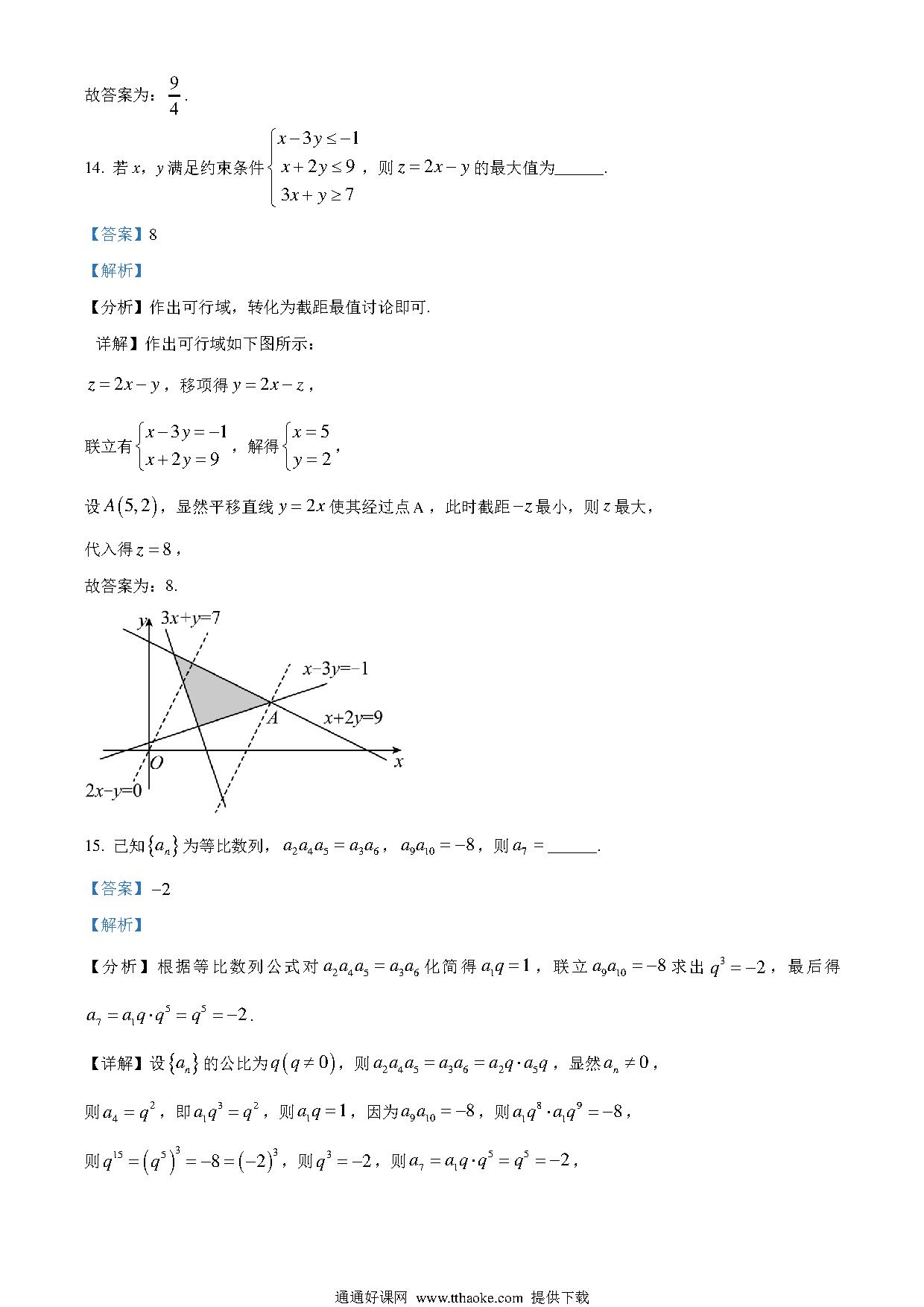 2024年普通高等学校招生全国统一考试(北京卷)数学