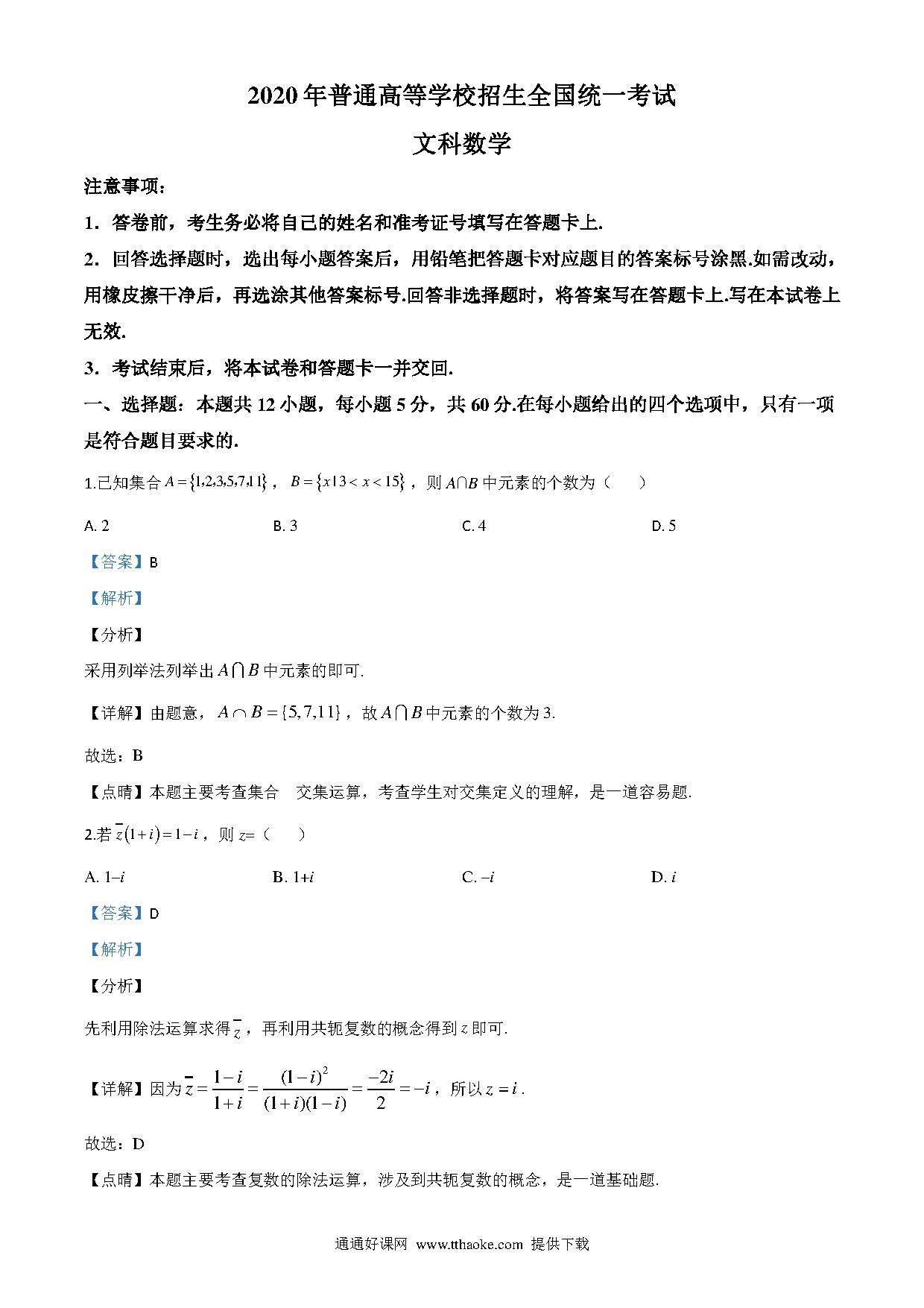 2020年高考全国卷Ⅲ文数试题解析(精编版)