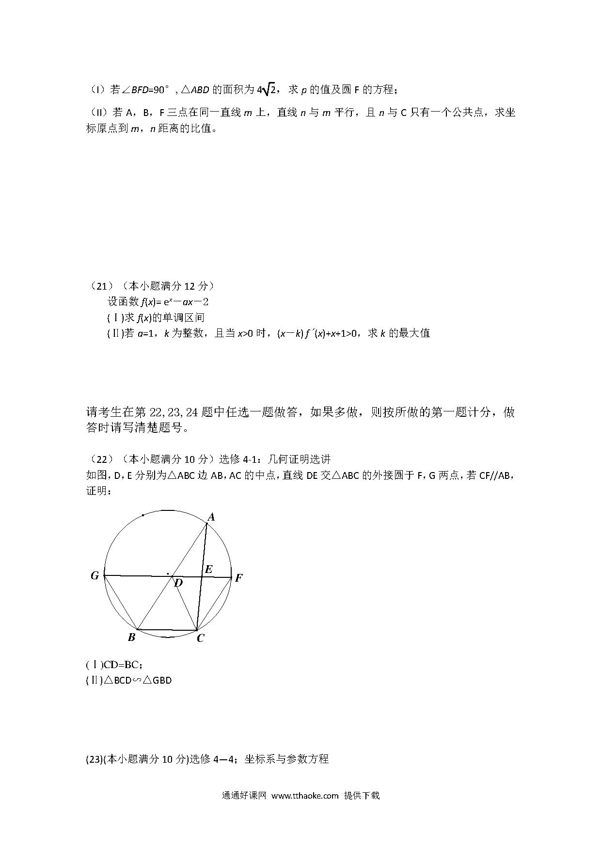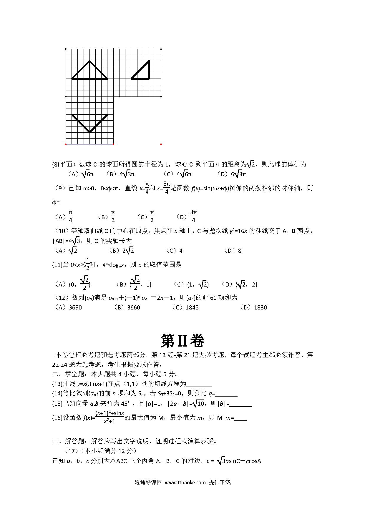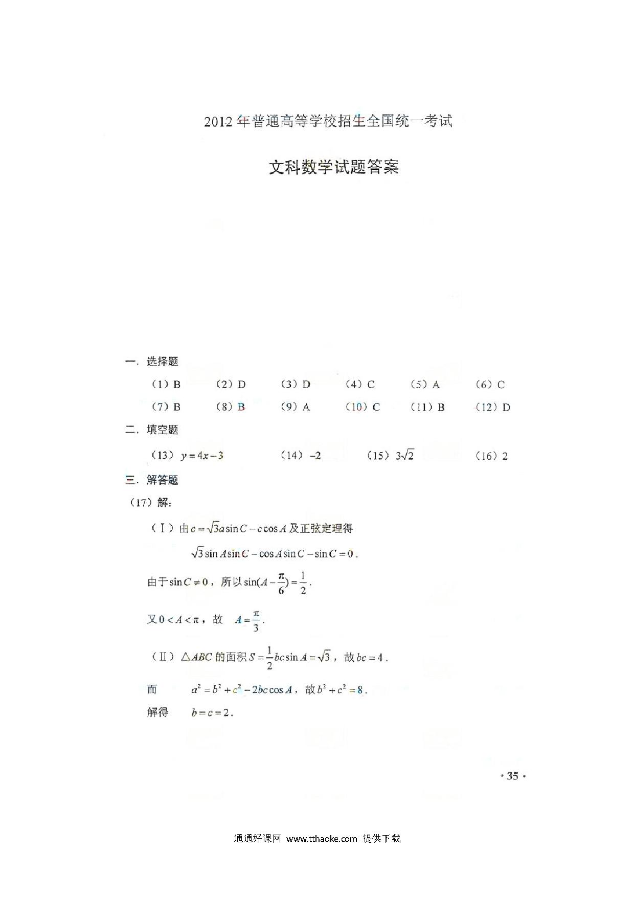 2012高考文数试卷有答案(新课标全国卷).pdf
