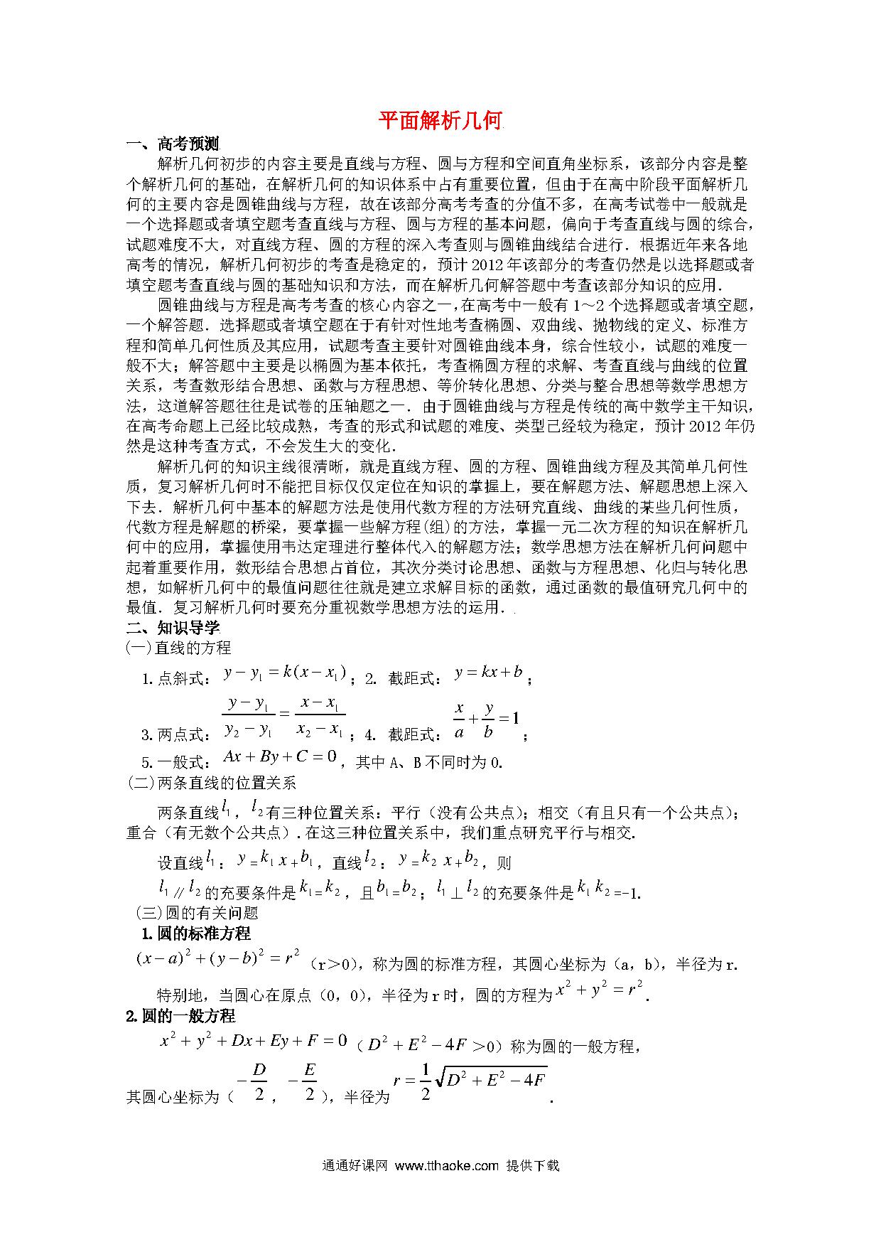 2012高考数学备考冲刺之易错点点睛系列专题平面解析几何(学生版).pdf