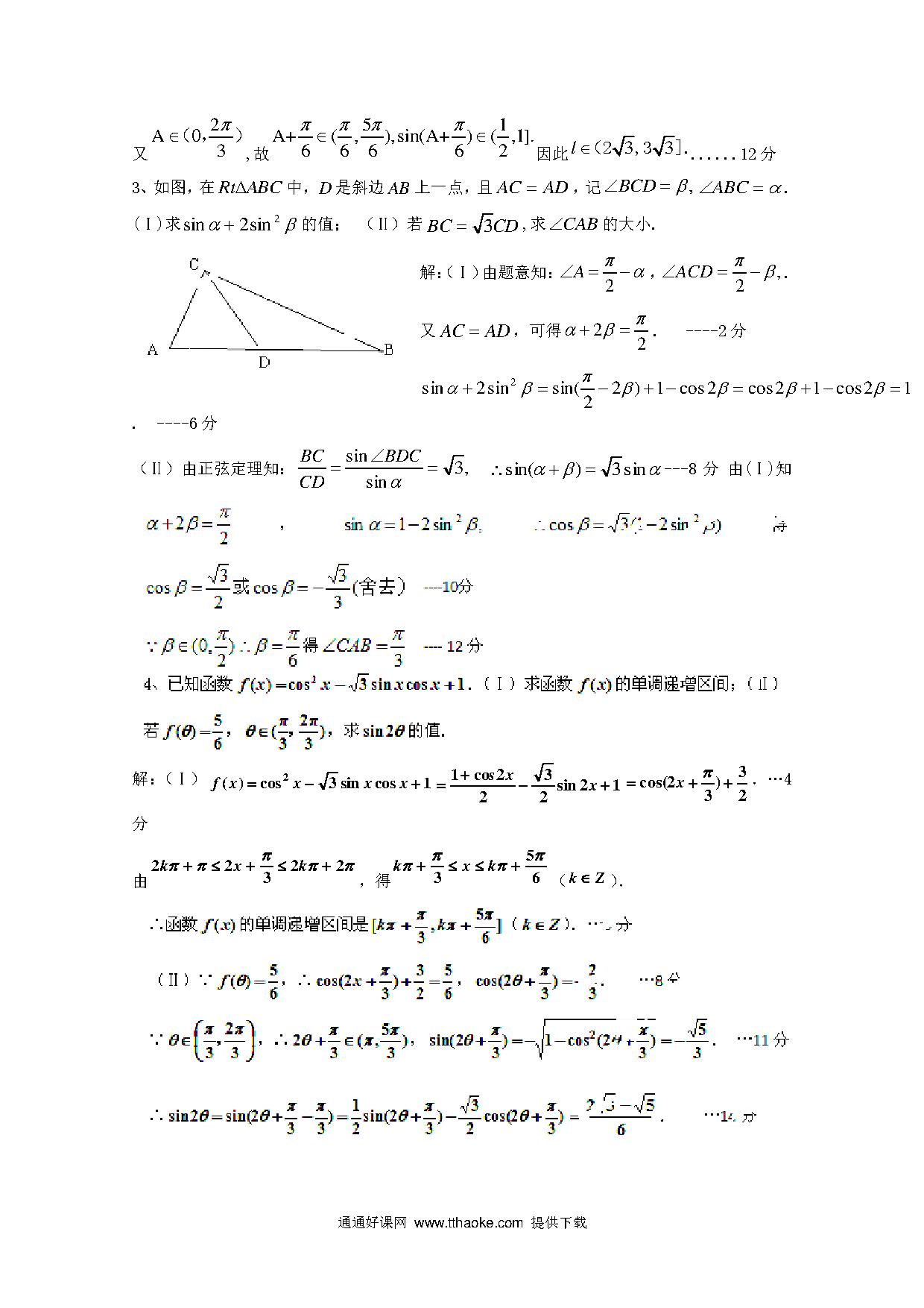 2012高考数学冲刺易错点 三角函数
