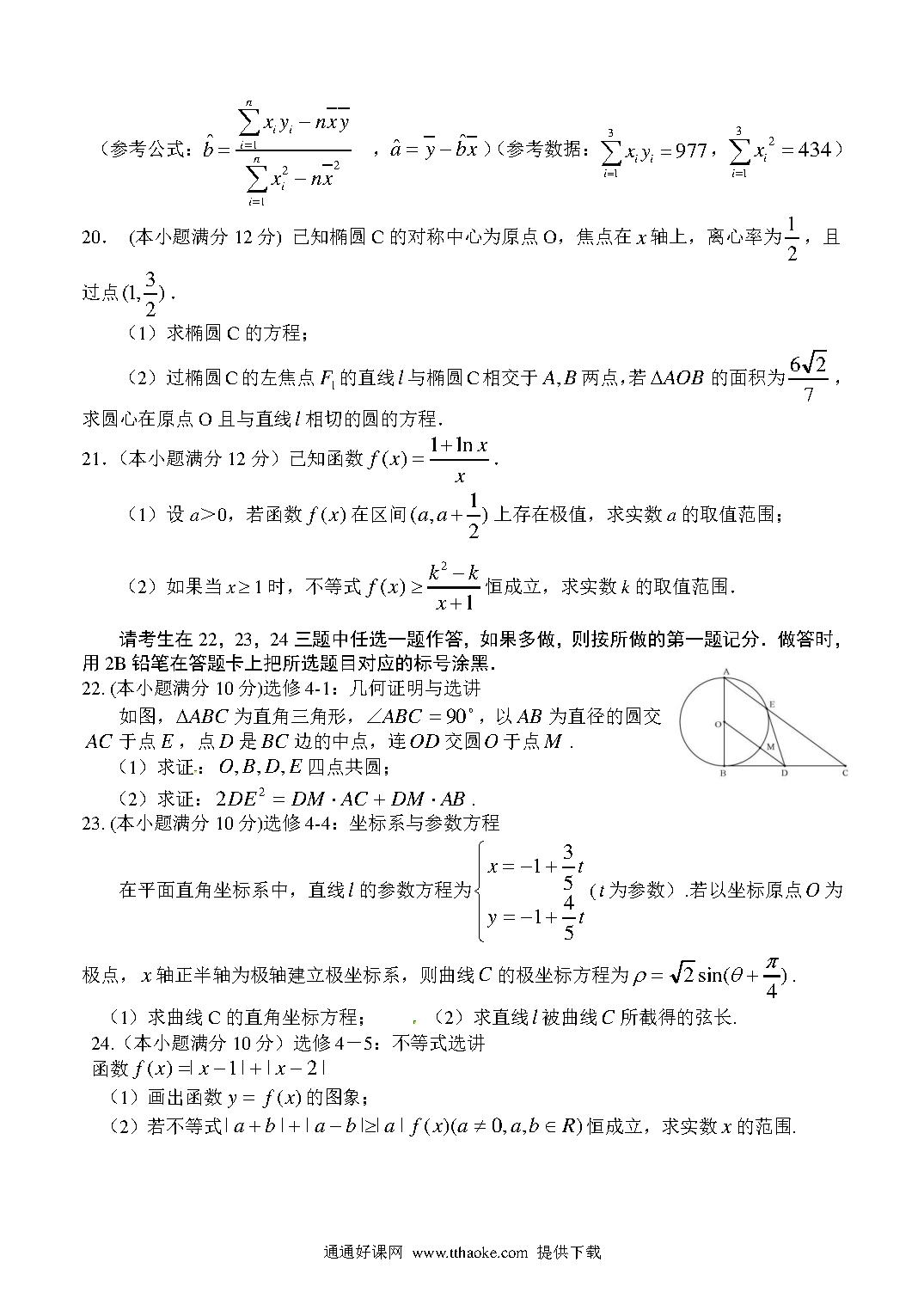 2012山西省第四次四校联考数学试卷及答案(文科).pdf