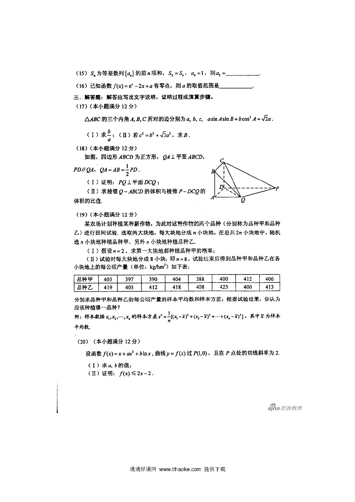 2023年高考全国乙卷数学(理)真题(原卷版)
