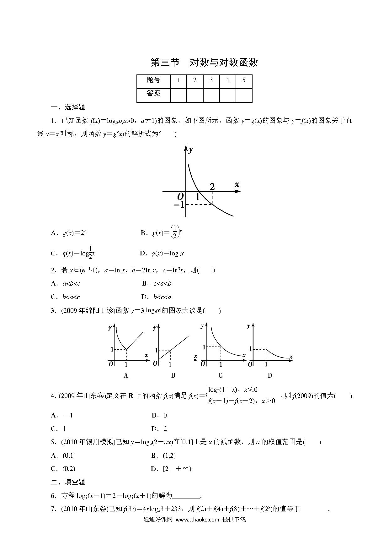 2011年高考一轮课时训练(理)3.2.3对数与对数函数 (通用版)