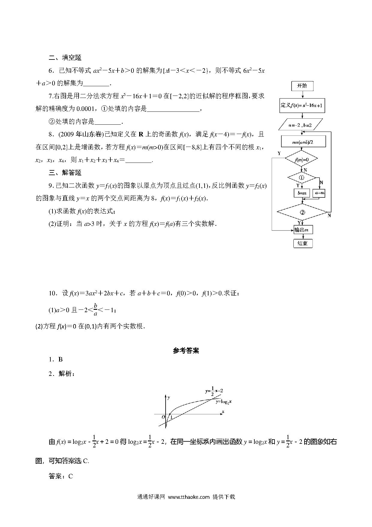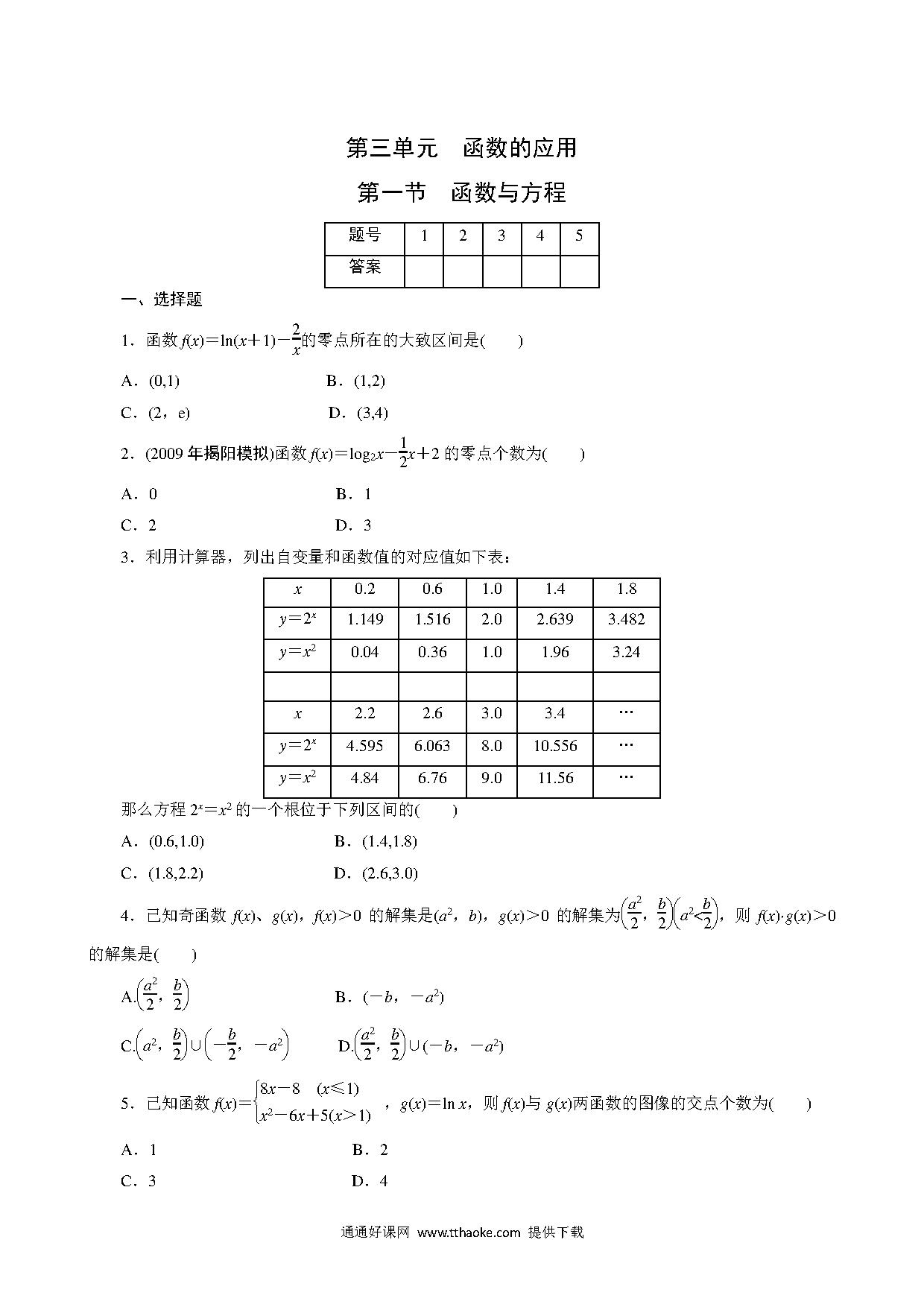 2011年高考一轮课时训练(理)3.3.1函数与方程 (通用版)