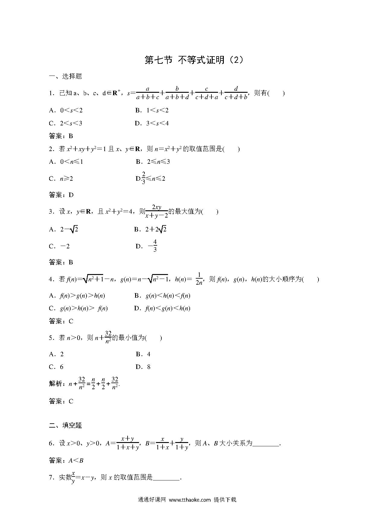 2011年高考一轮课时训练(理)7.7不等式证明(2)(通用版).pdf