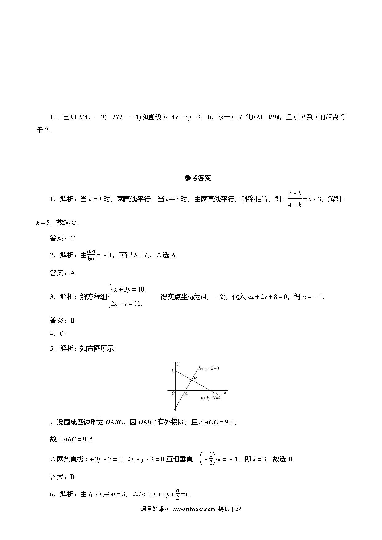 2011年高考一轮课时训练(理)9.2两直线的位置关系、交点、距离(通用版).pdf