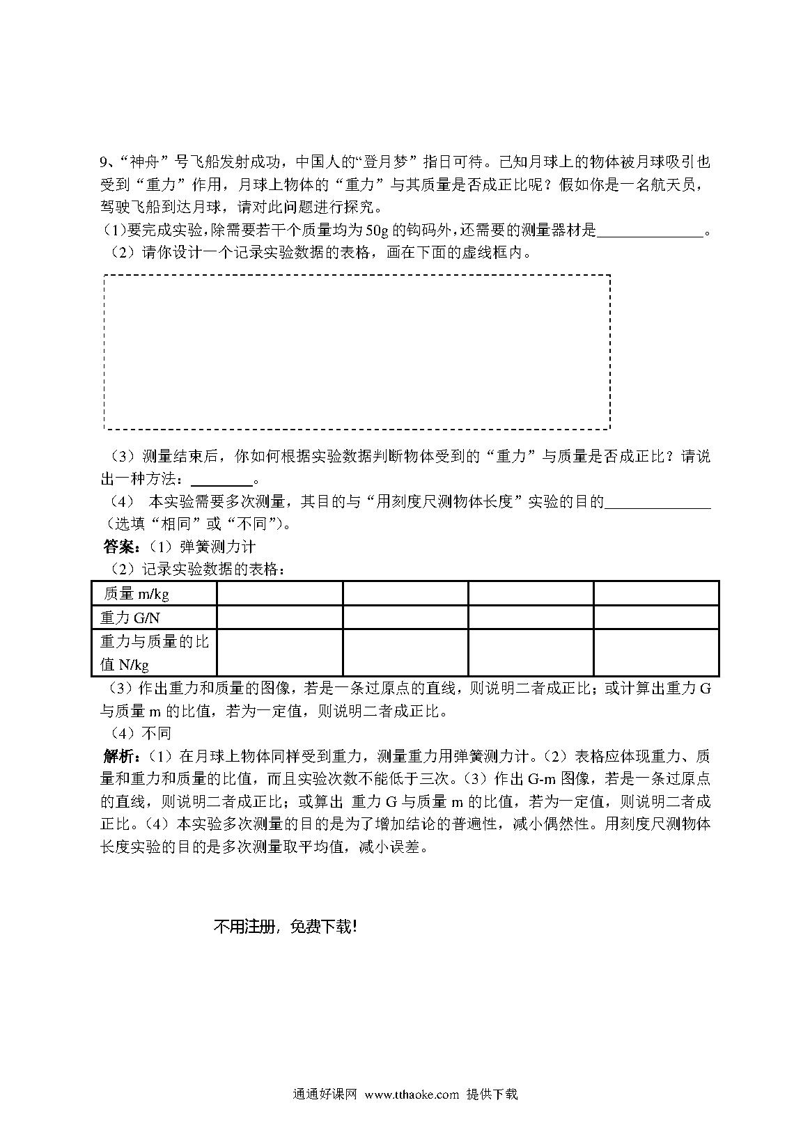 人教版八年级下册七章第三节《重力》同步练习题及答案.pdf