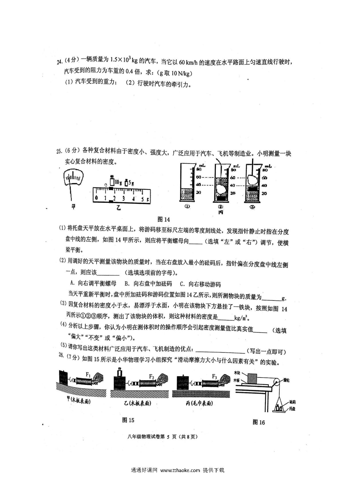 重庆江津联考2016-2017学年度下期初二物理期中试卷及答案