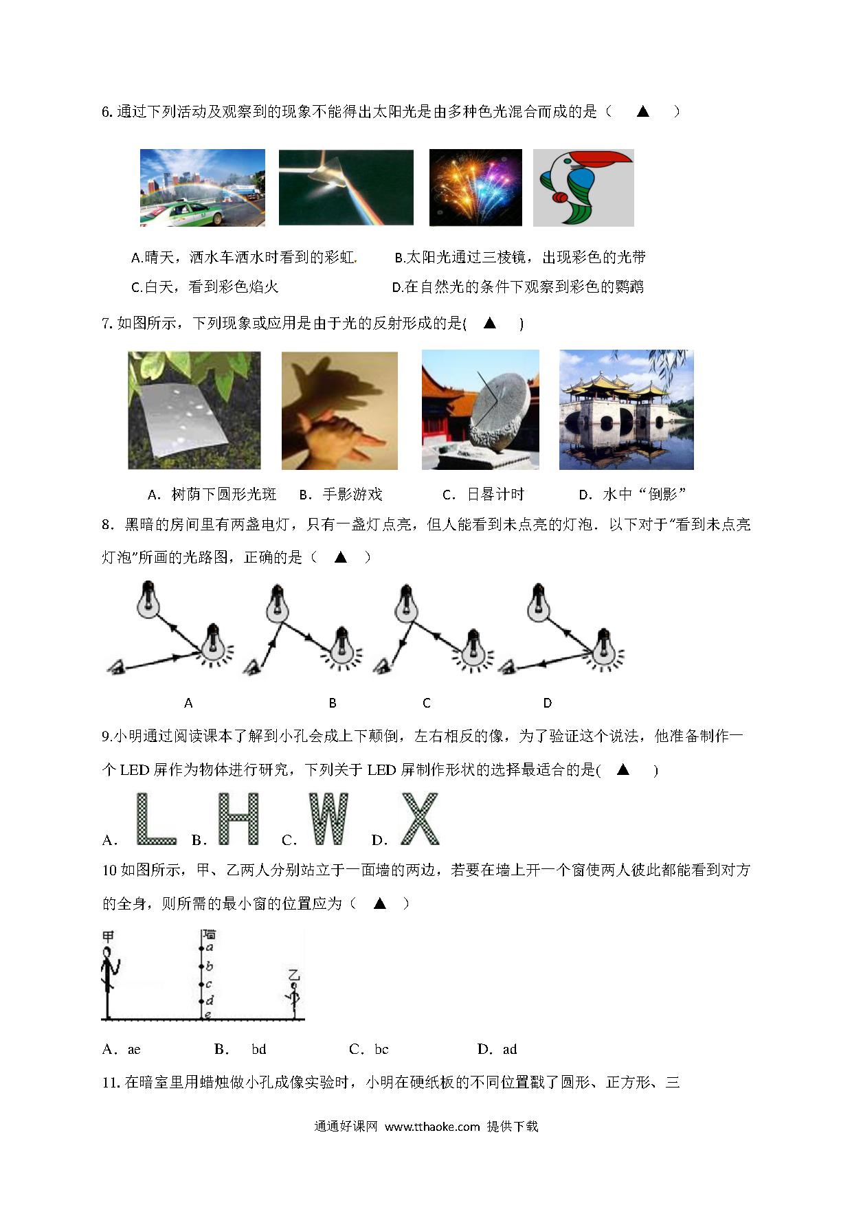 如皋市白蒲初中2017-2018学年八年级上学期期中物理试题含答案.pdf