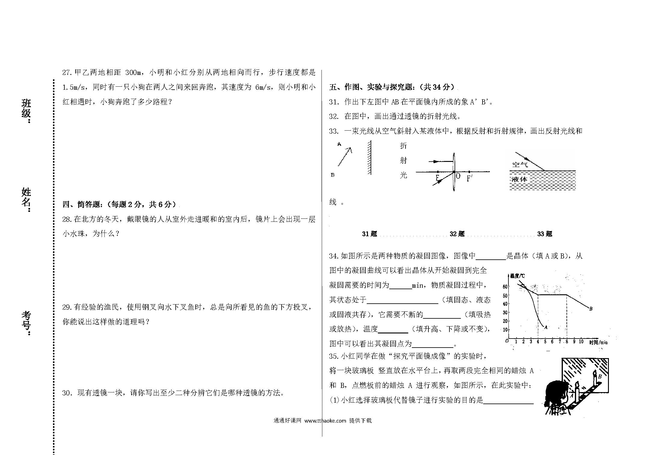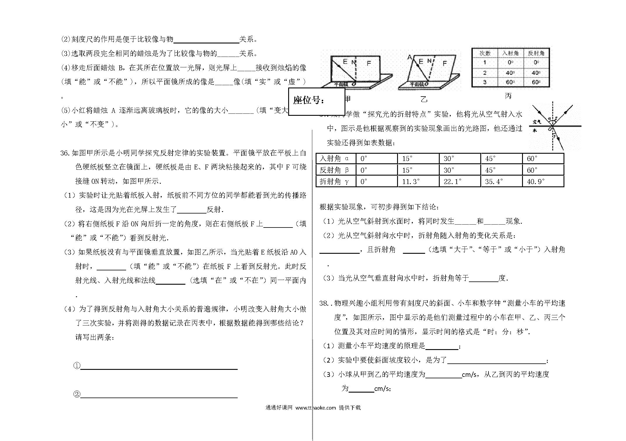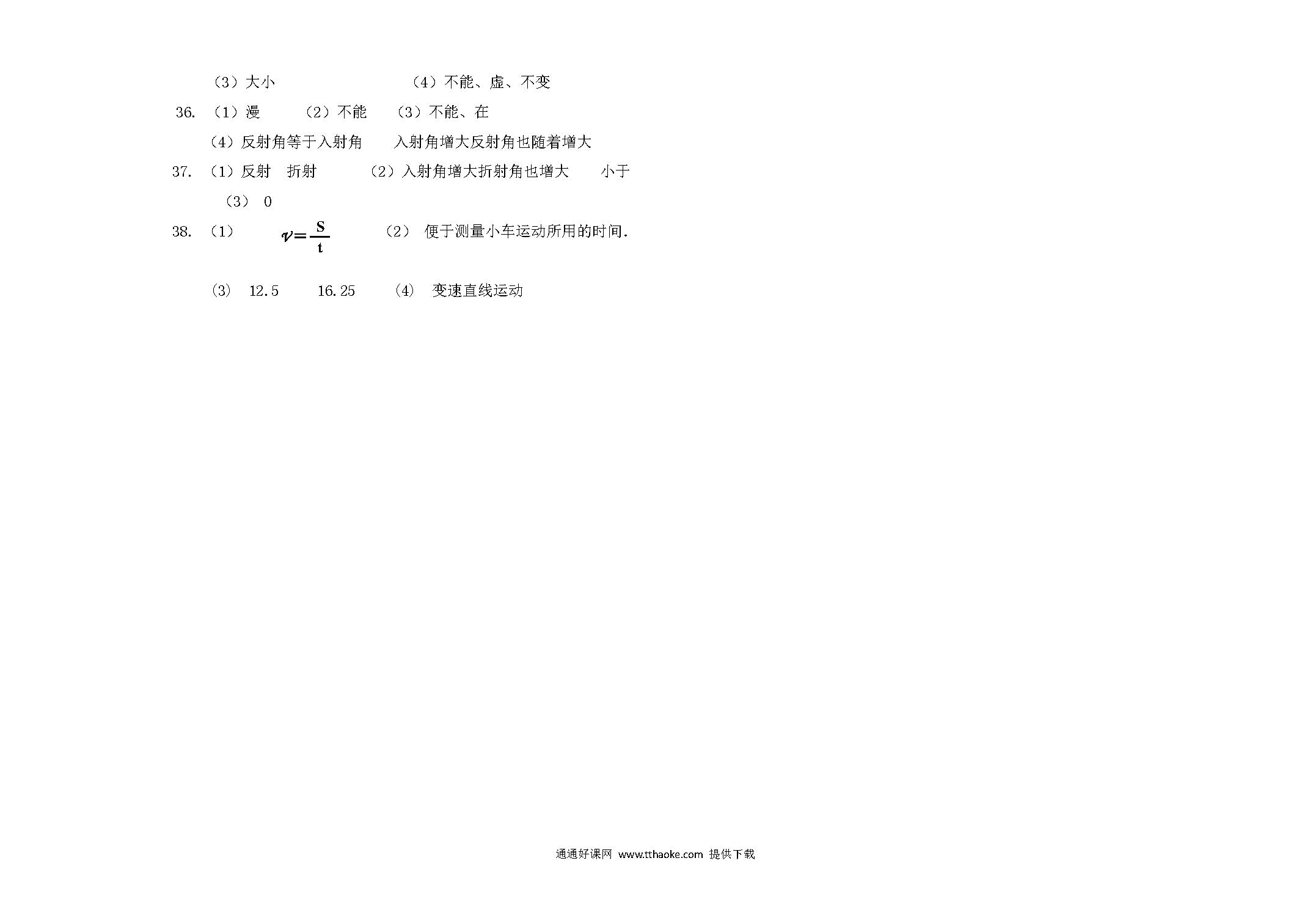 2017.11八年级物理期中考试试卷及答案