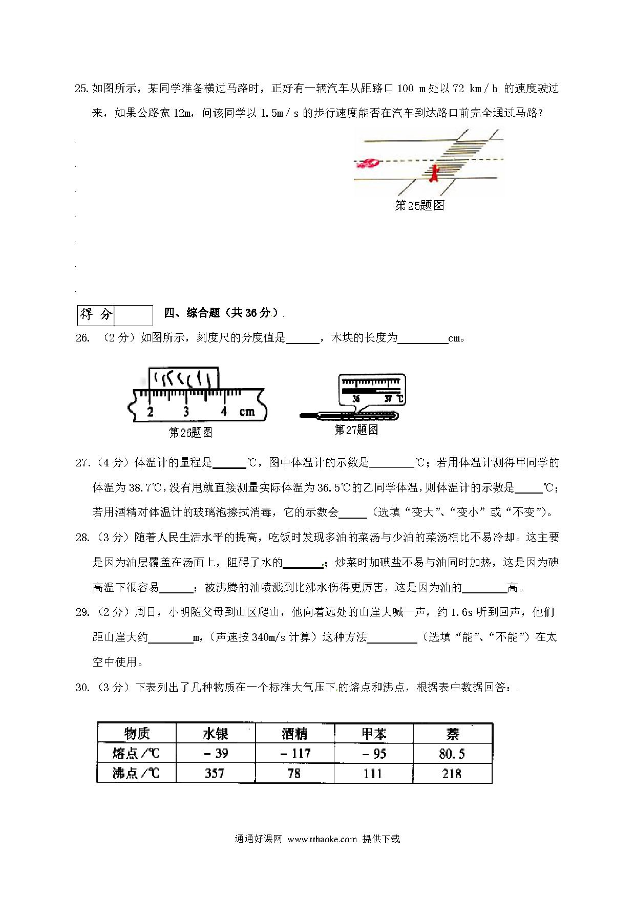 重庆江津联考2016-2017学年度下期初二物理期中试卷及答案