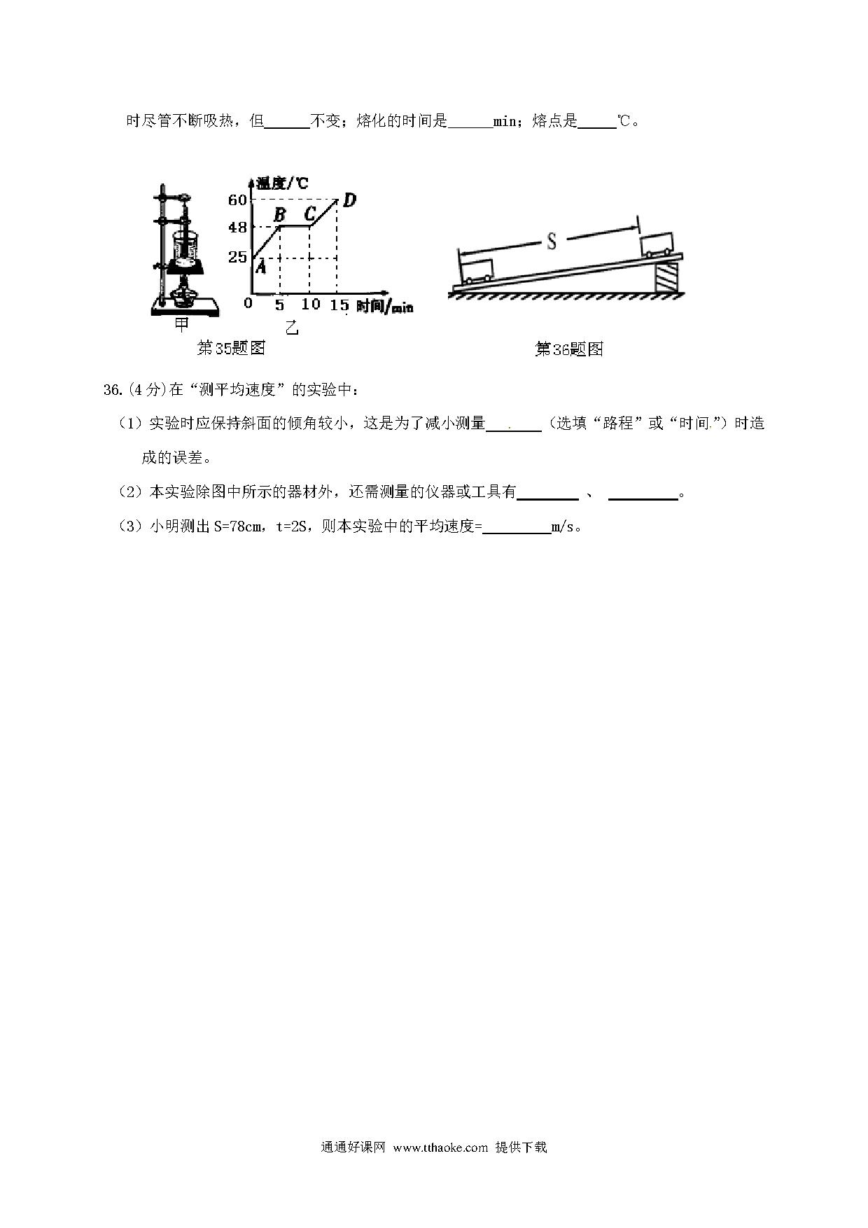 济南市槐荫区2017年4月八年级物理期中试题及答案