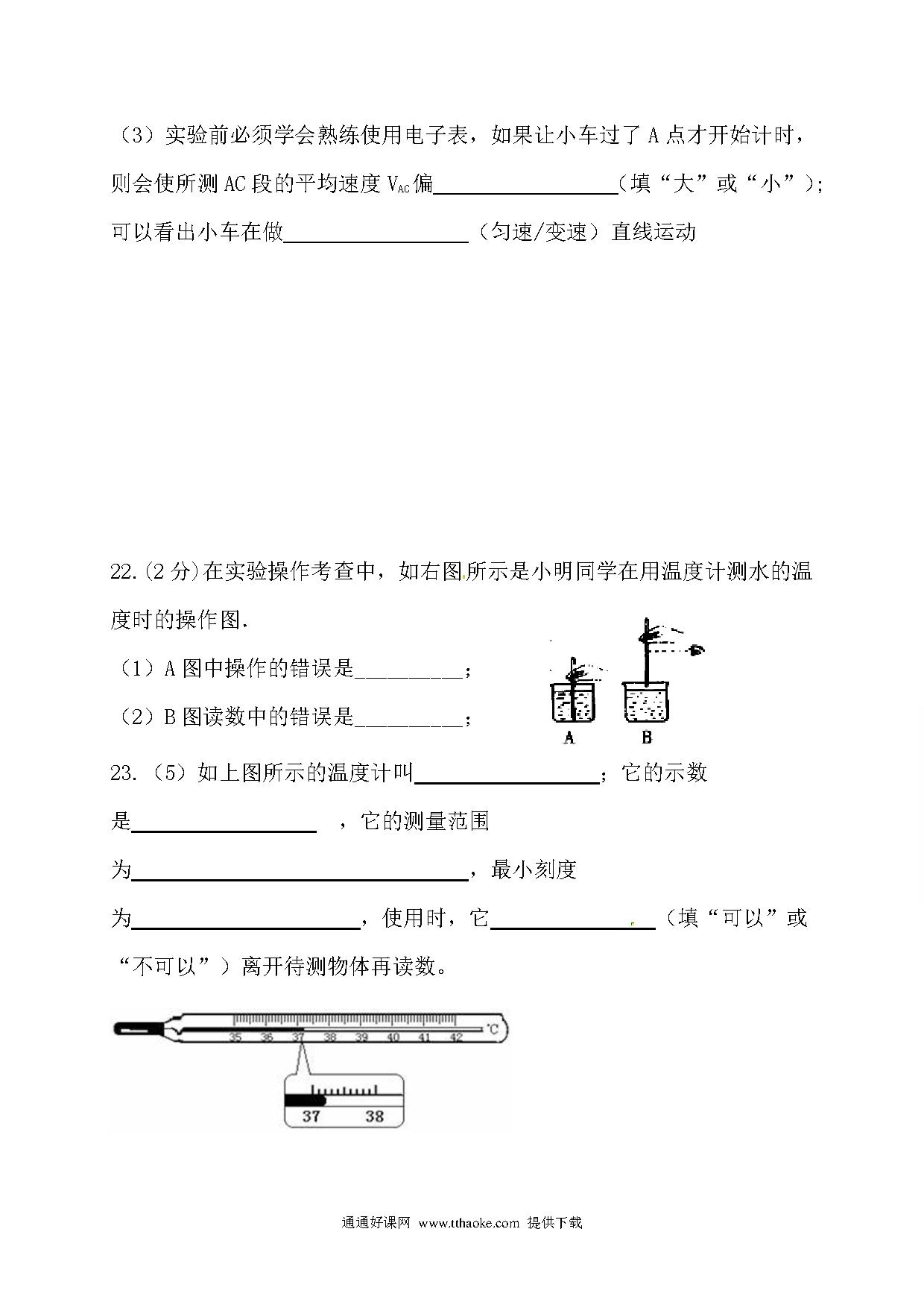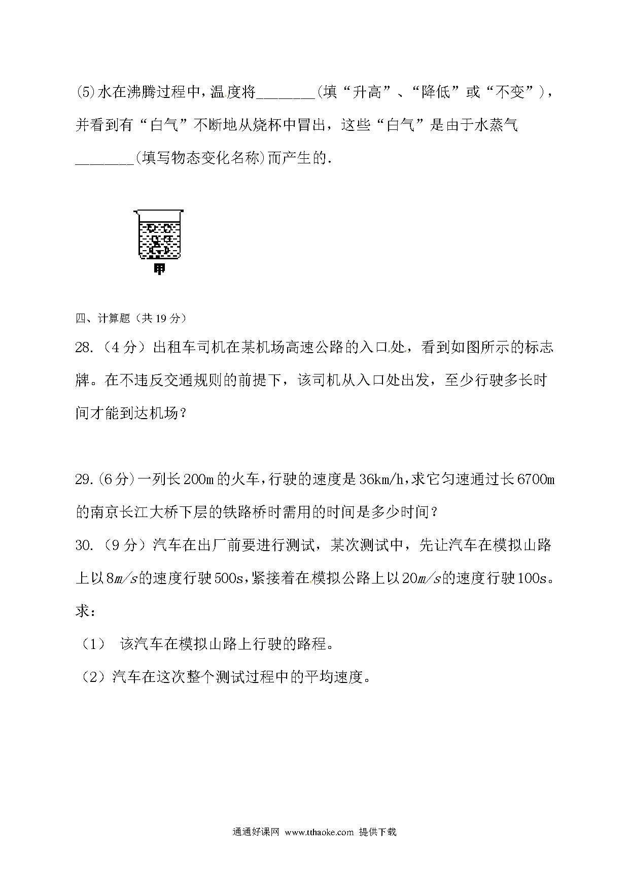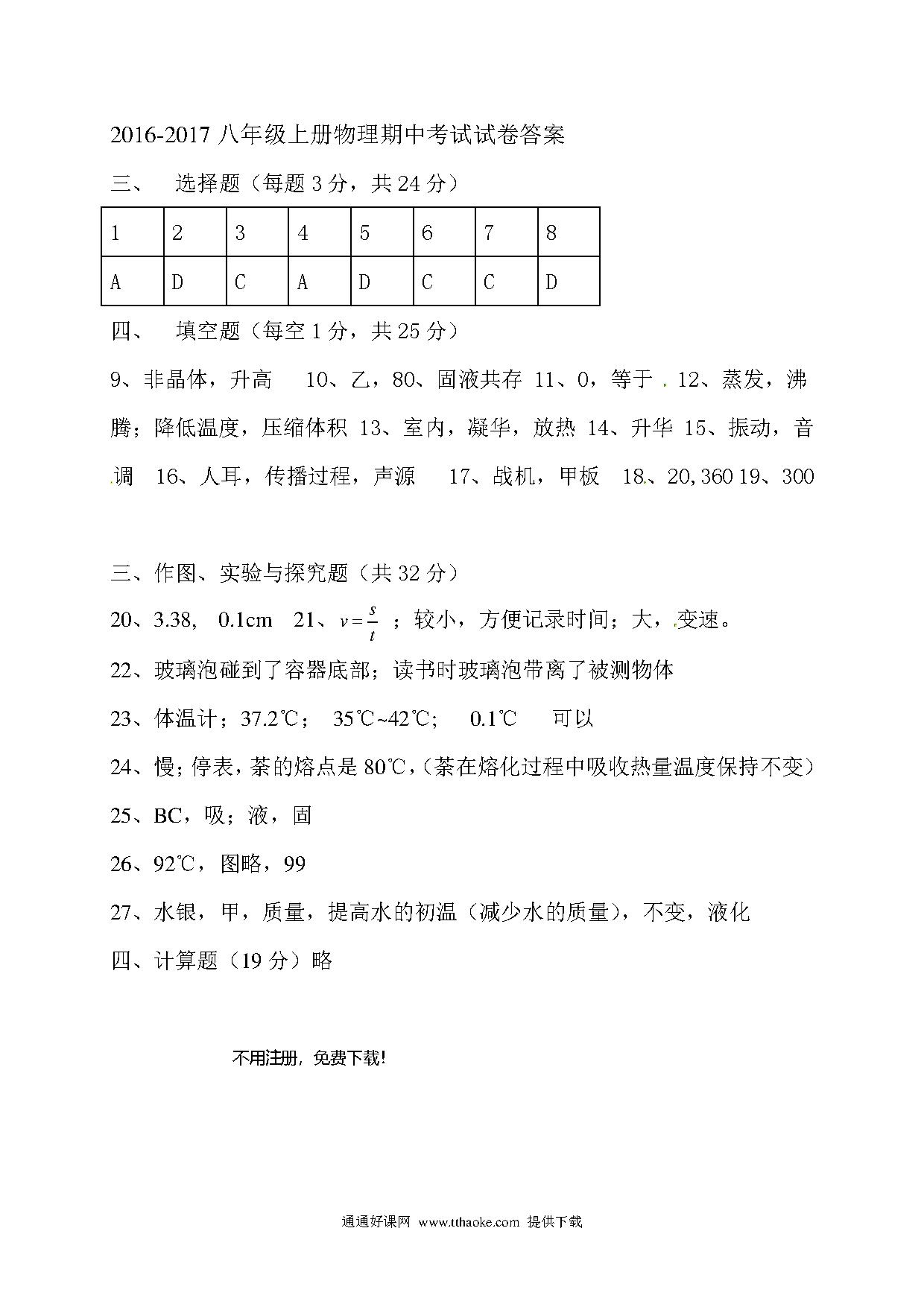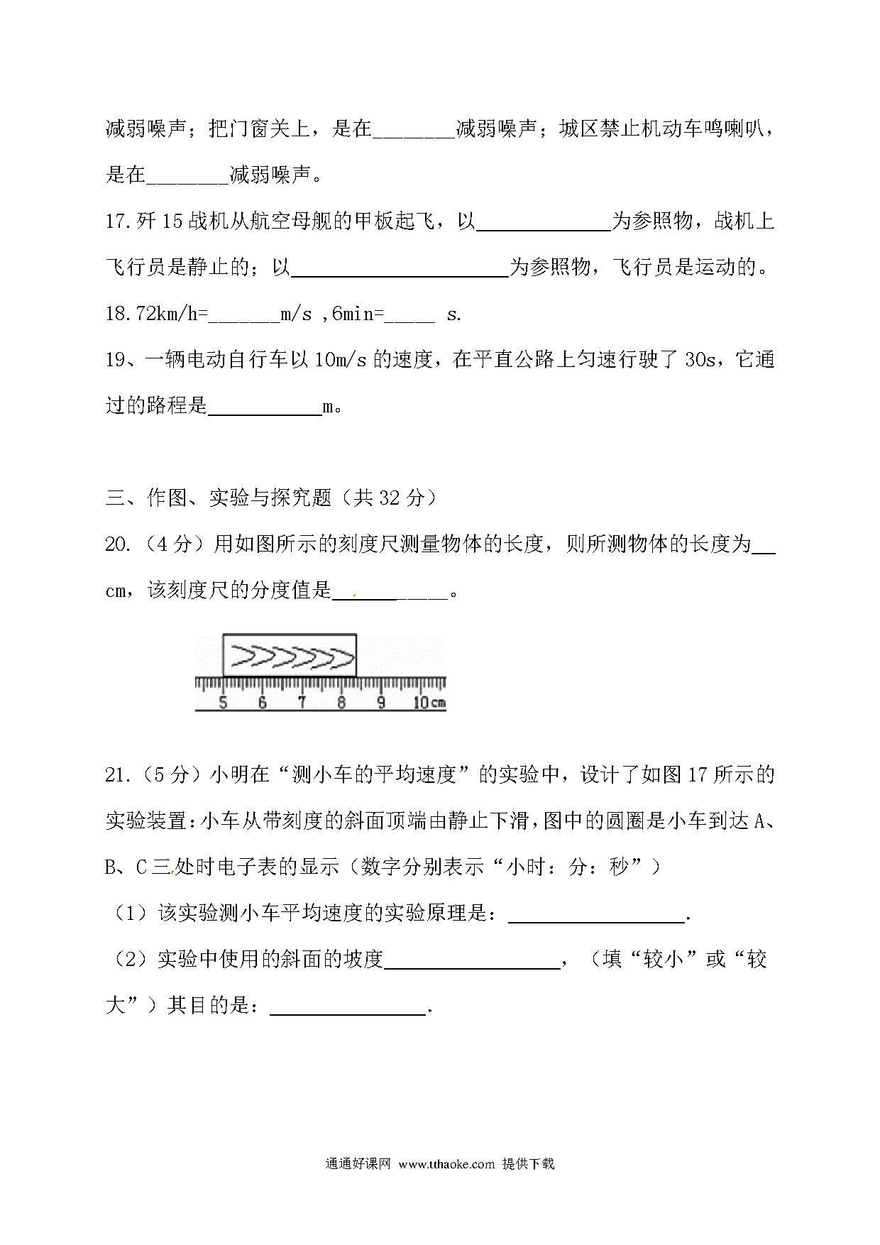 2017.11八年级物理期中考试试卷及答案