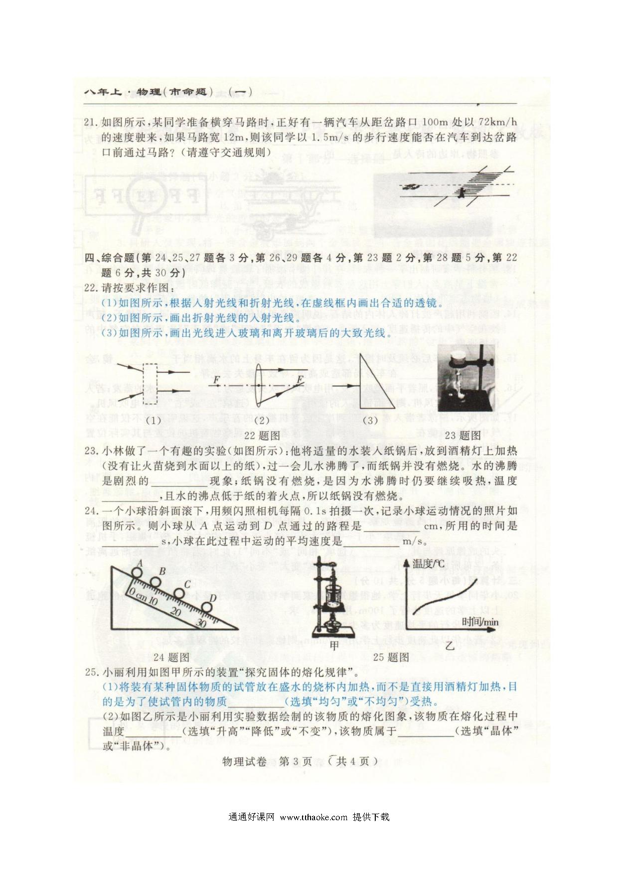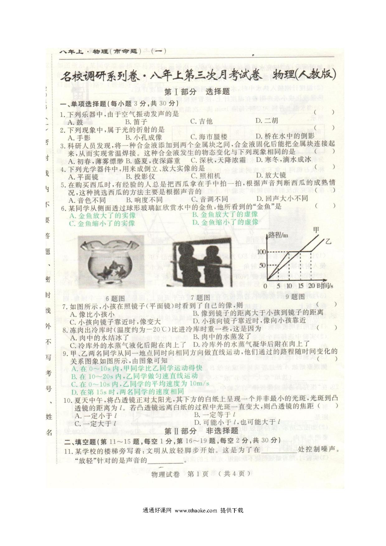市命题长春名校调研2016年八年级上学期第三次月考物理试题及答案.pdf
