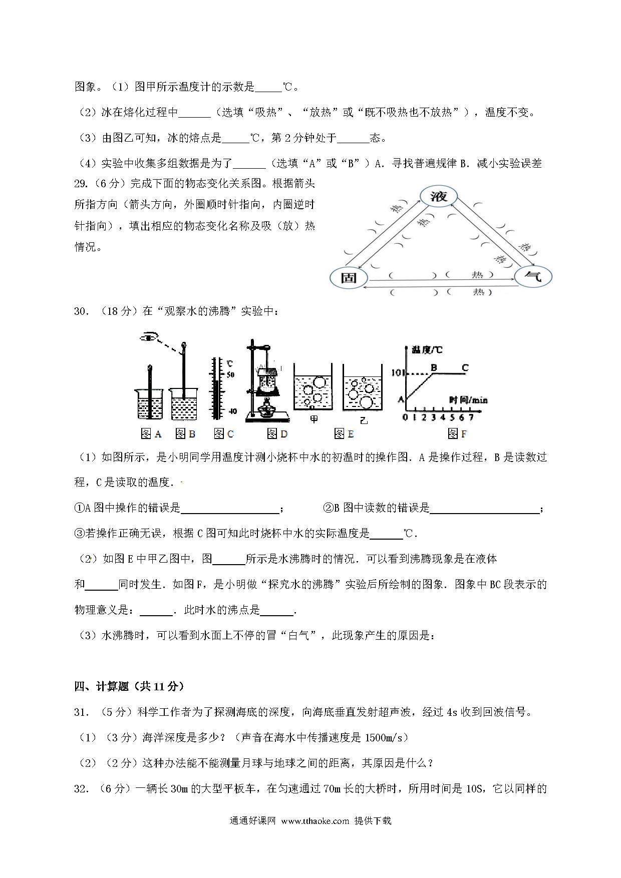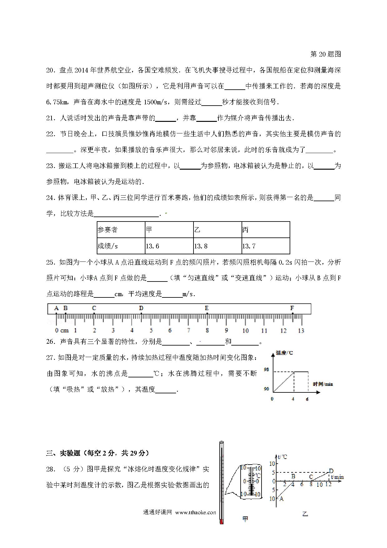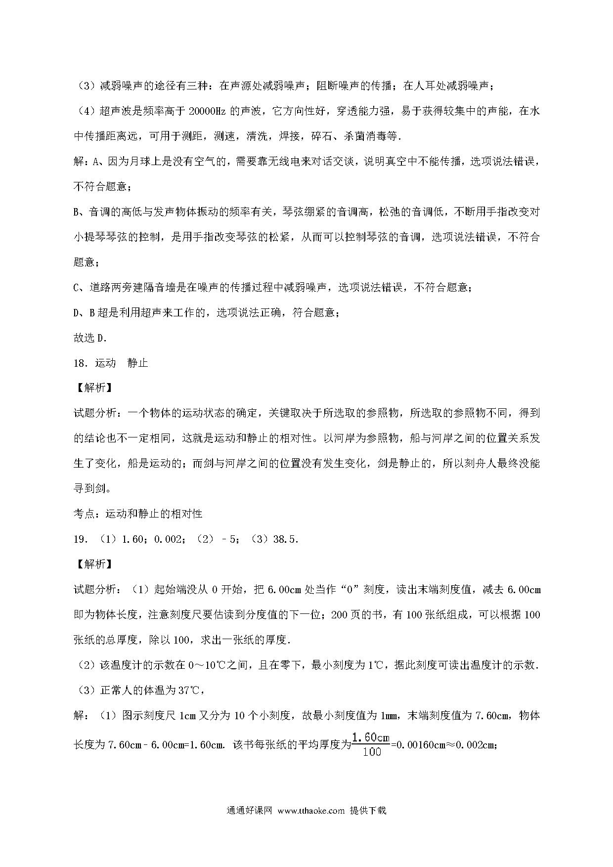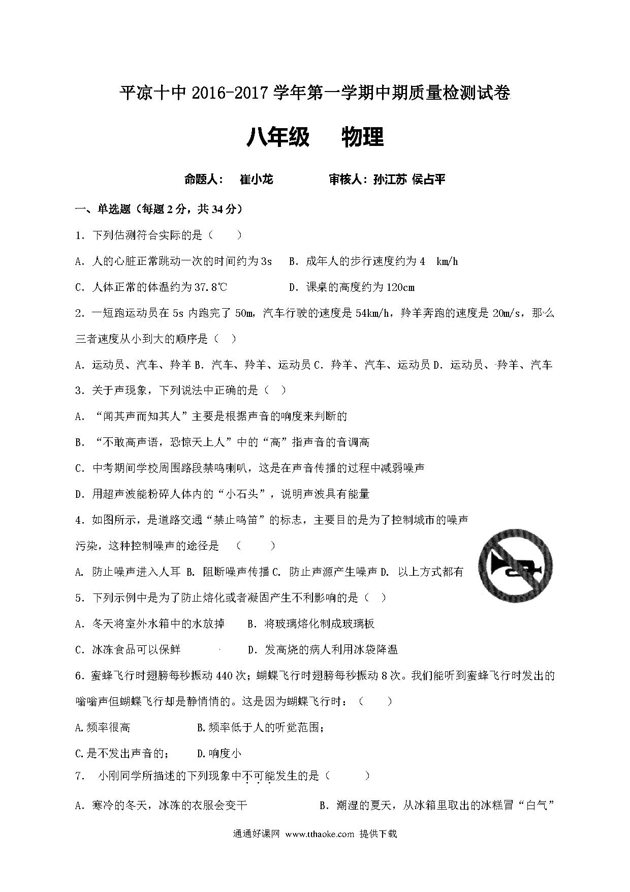 平凉十中2016-2017学年第一学期八年级物理期中试卷及答案.pdf