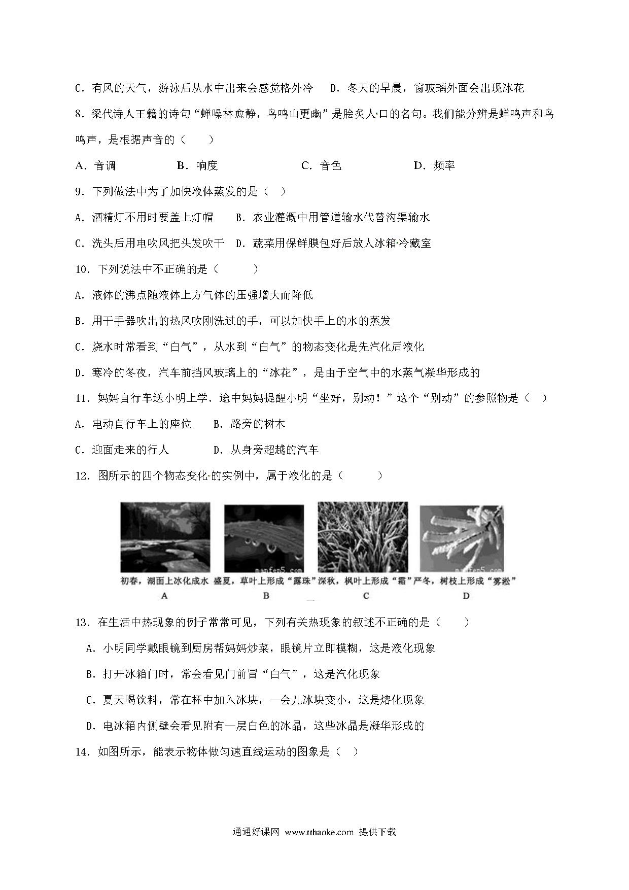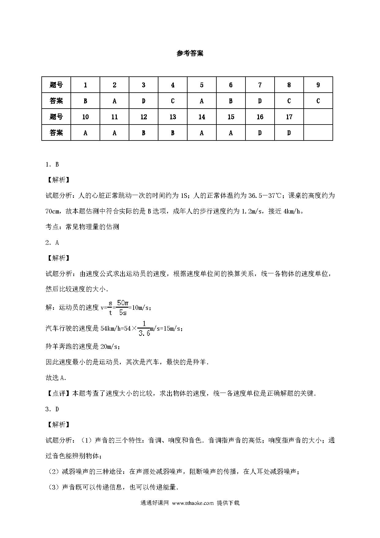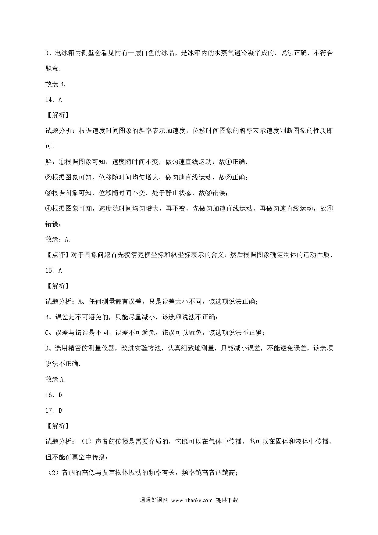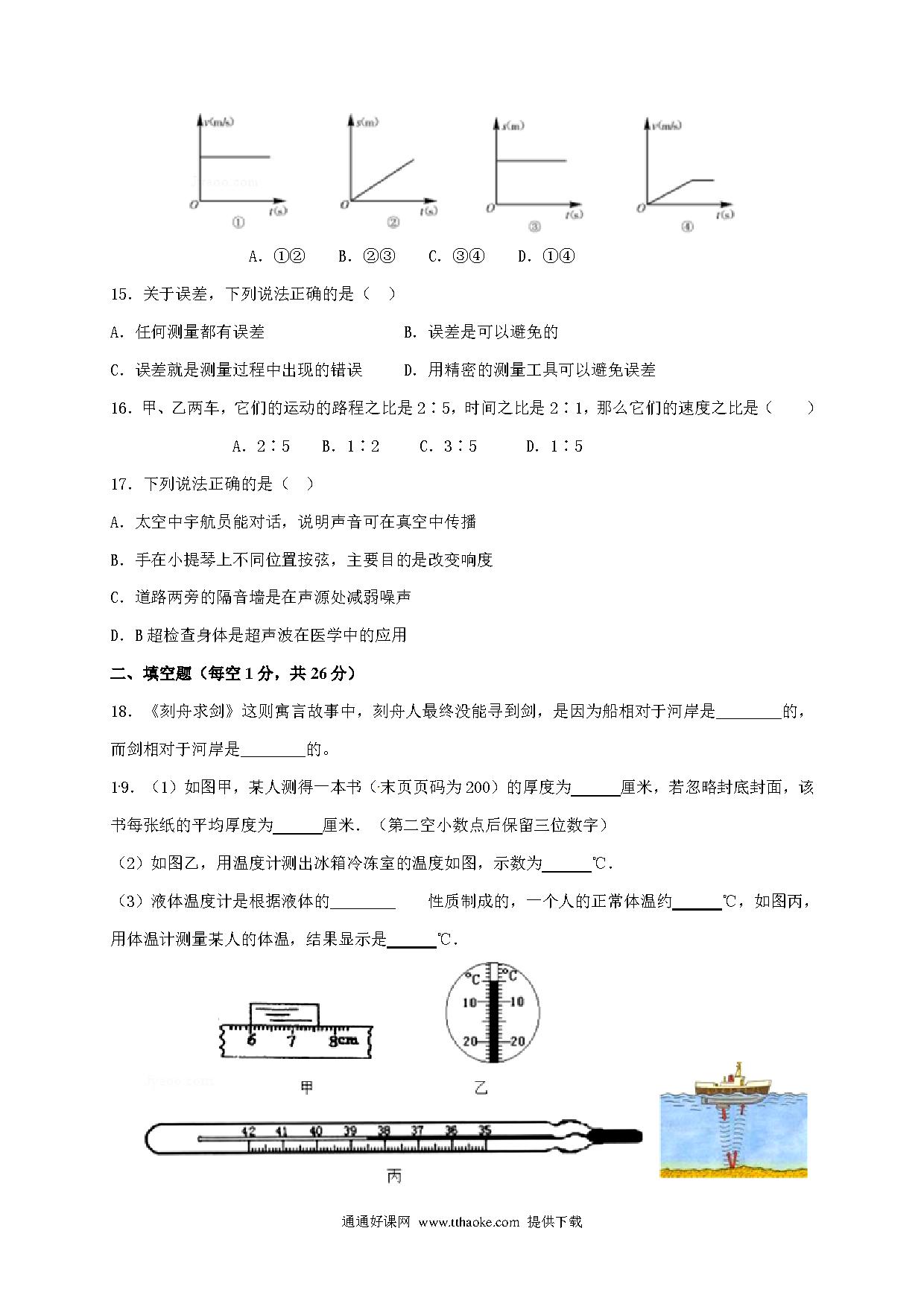 平凉十中2016-2017学年第一学期八年级物理期中试卷及答案.pdf