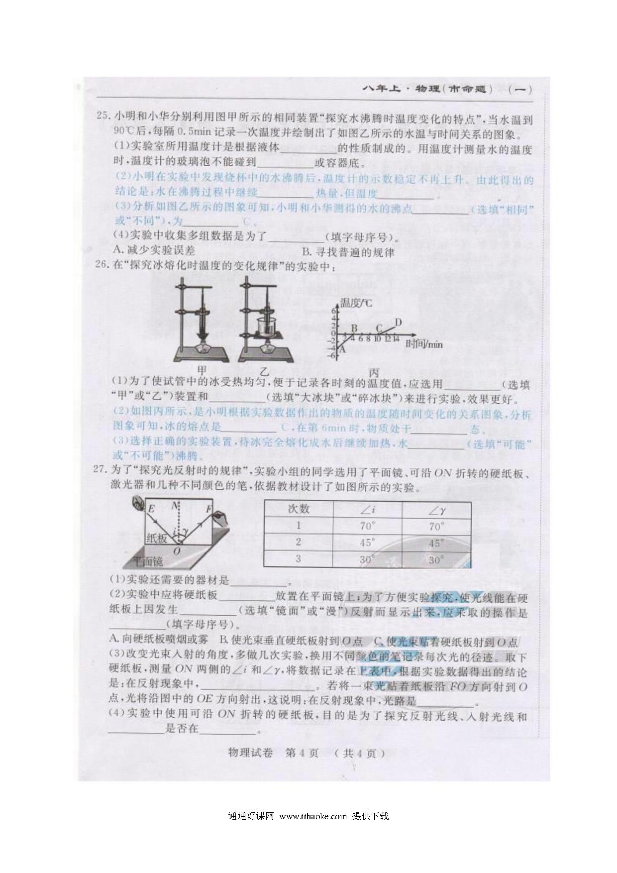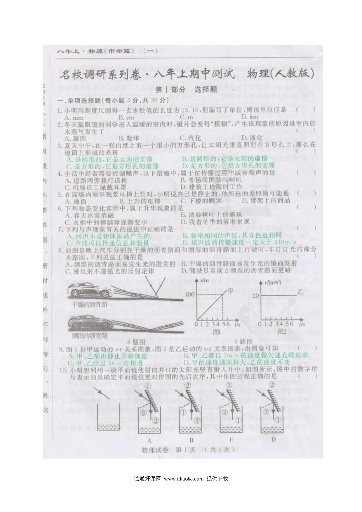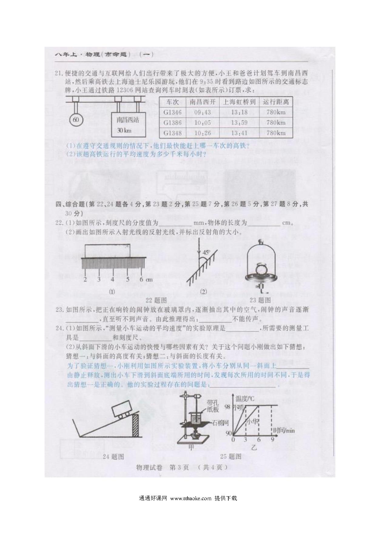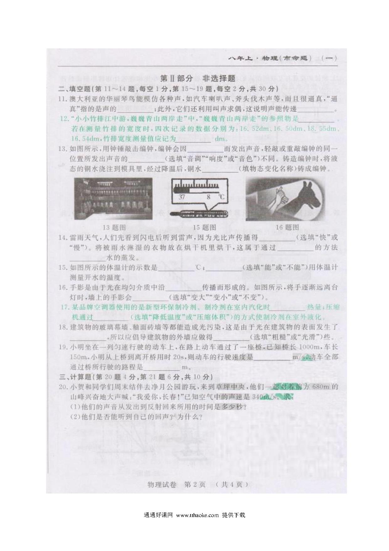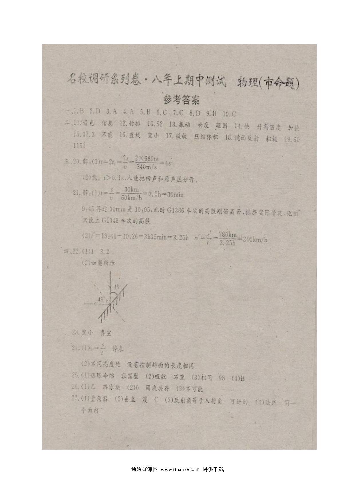 2017.11八年级物理期中考试试卷及答案