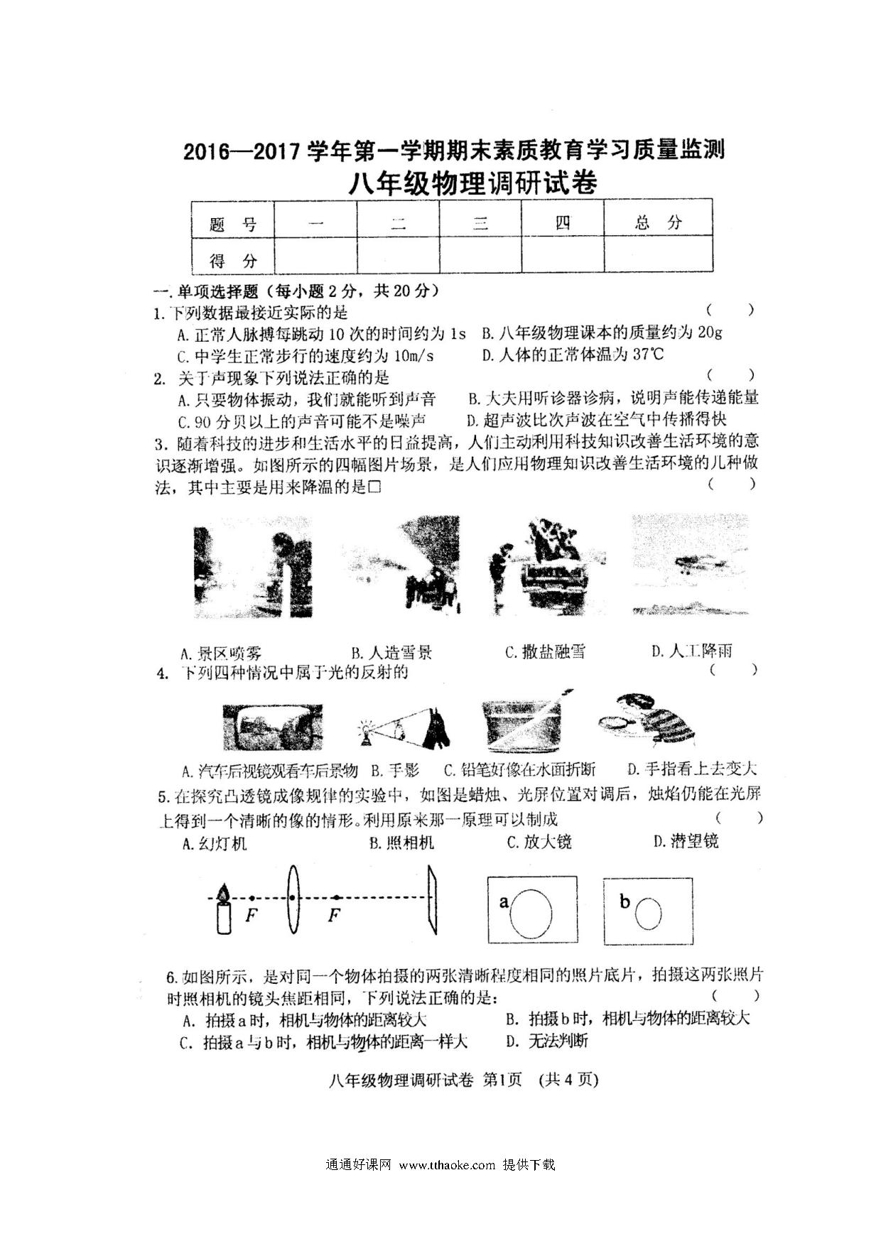 农安县2016-2017年八年级物理期末试卷及答案.pdf