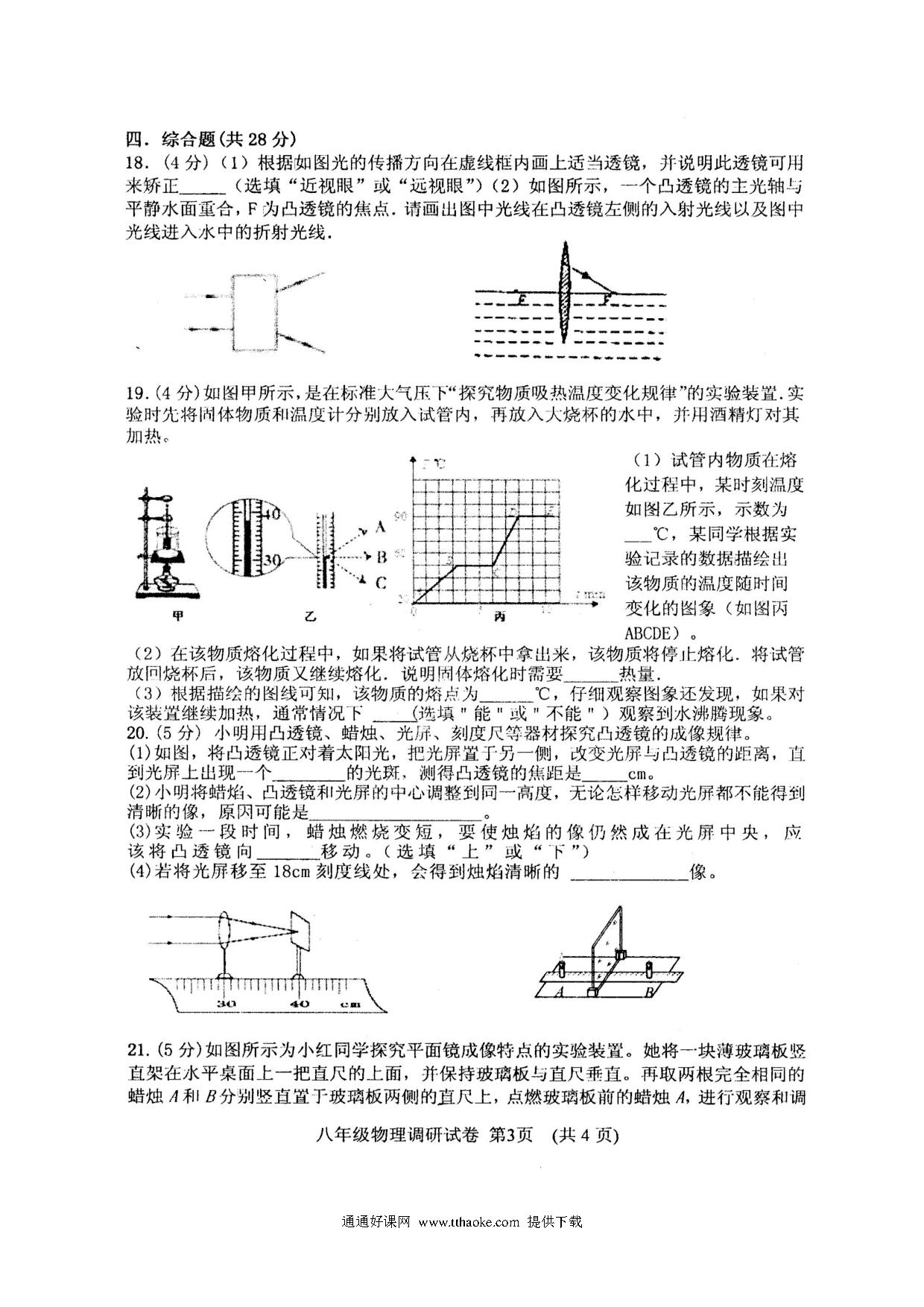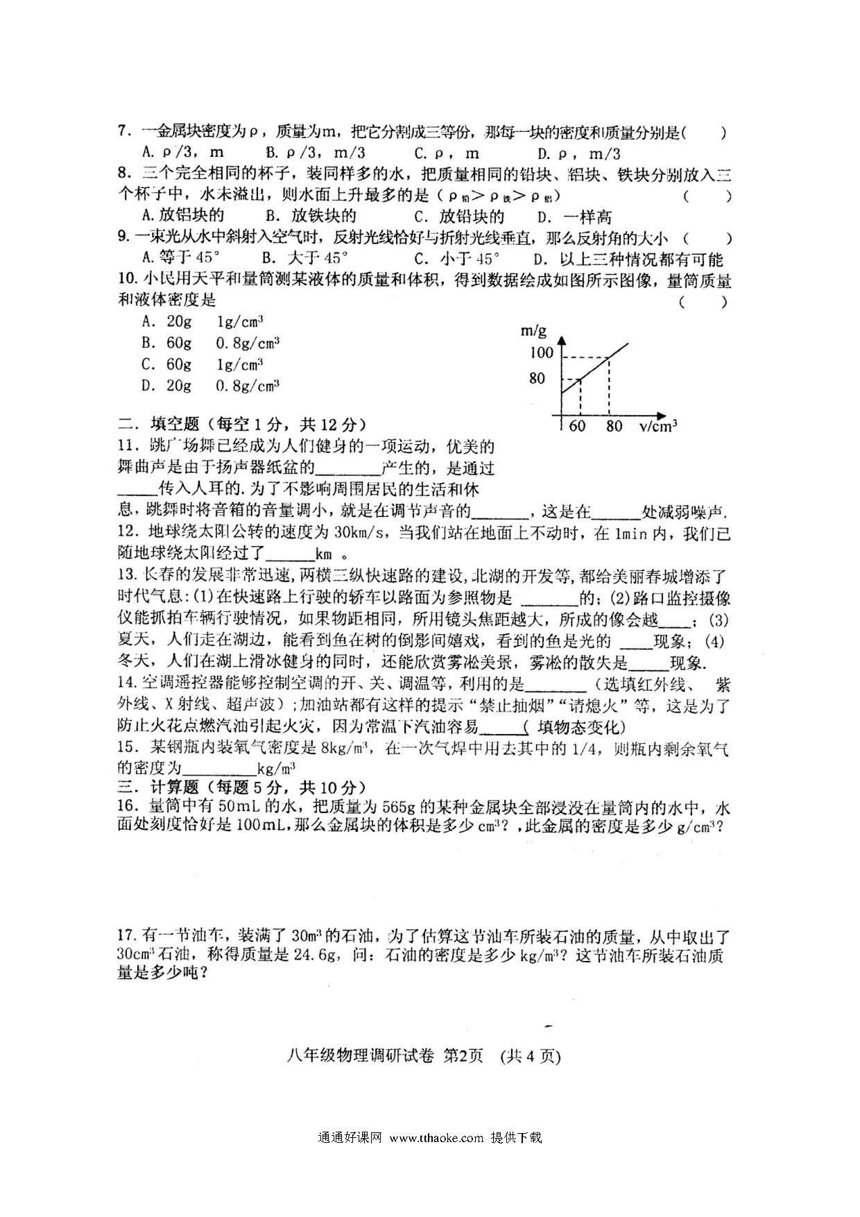 文安县2016-2017学年第二学期八年级物理期中试卷及答案