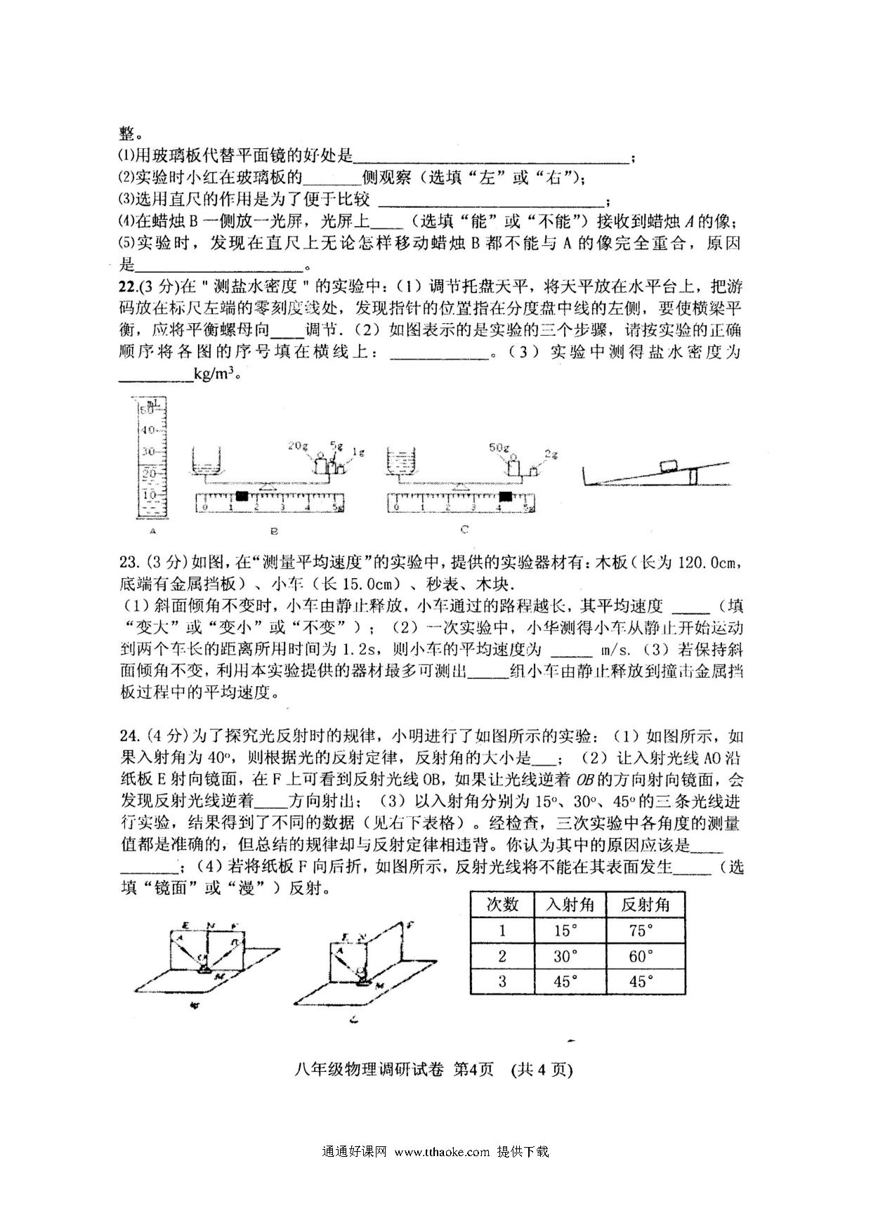 济南市槐荫区2017年4月八年级物理期中试题及答案