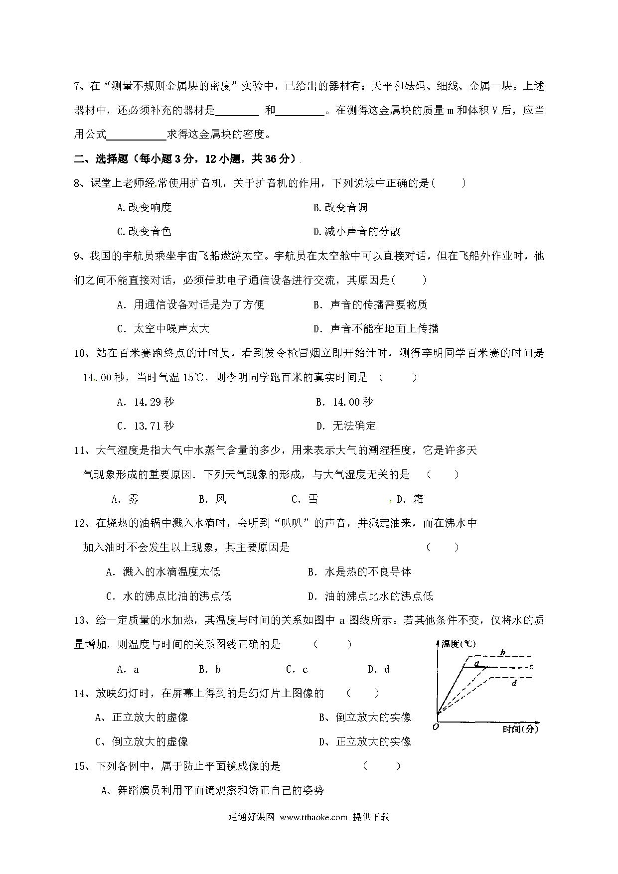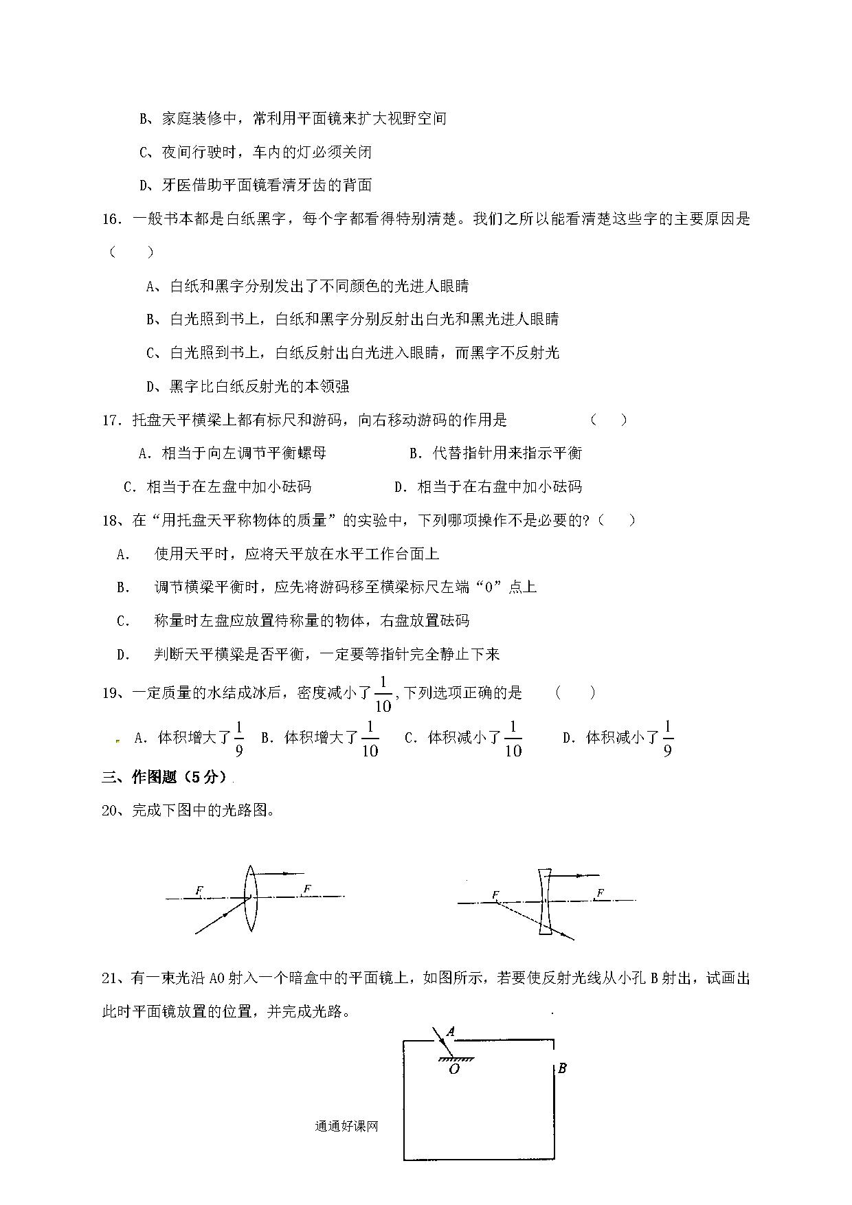 2017.11八年级物理期中考试试卷及答案
