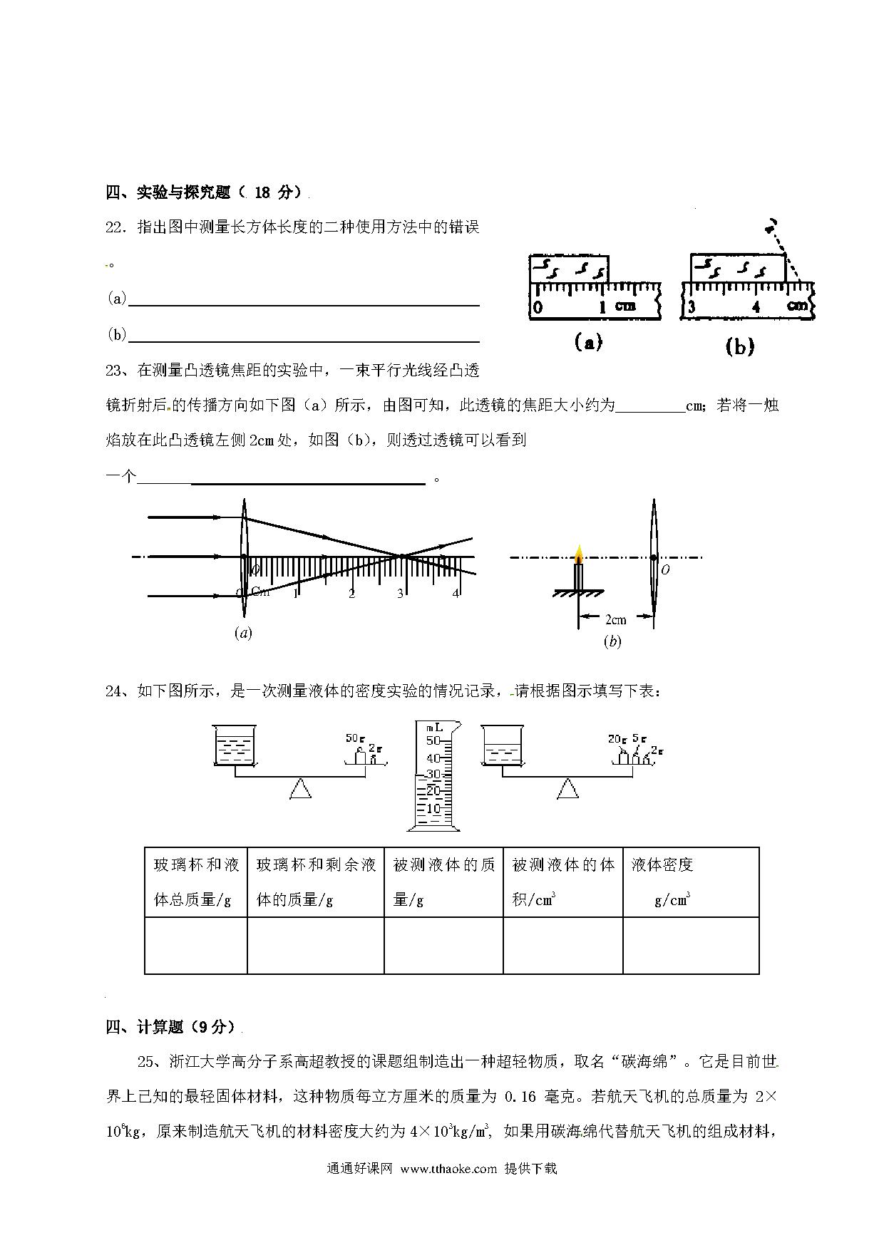 厦门市同安区016-2017学年八年级第二学期物理期中试卷及答案