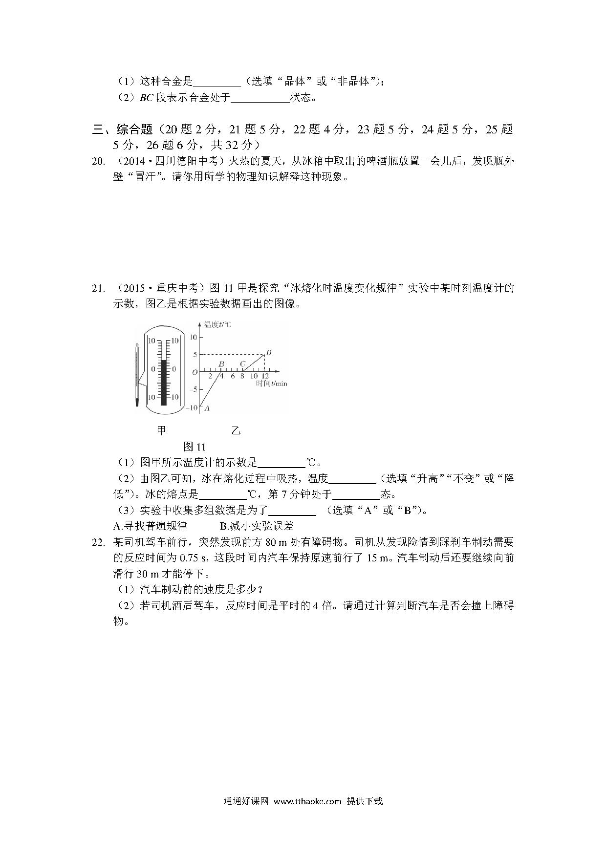 教材全解2016年人教版八年级物理上册期中检测题含答案解析