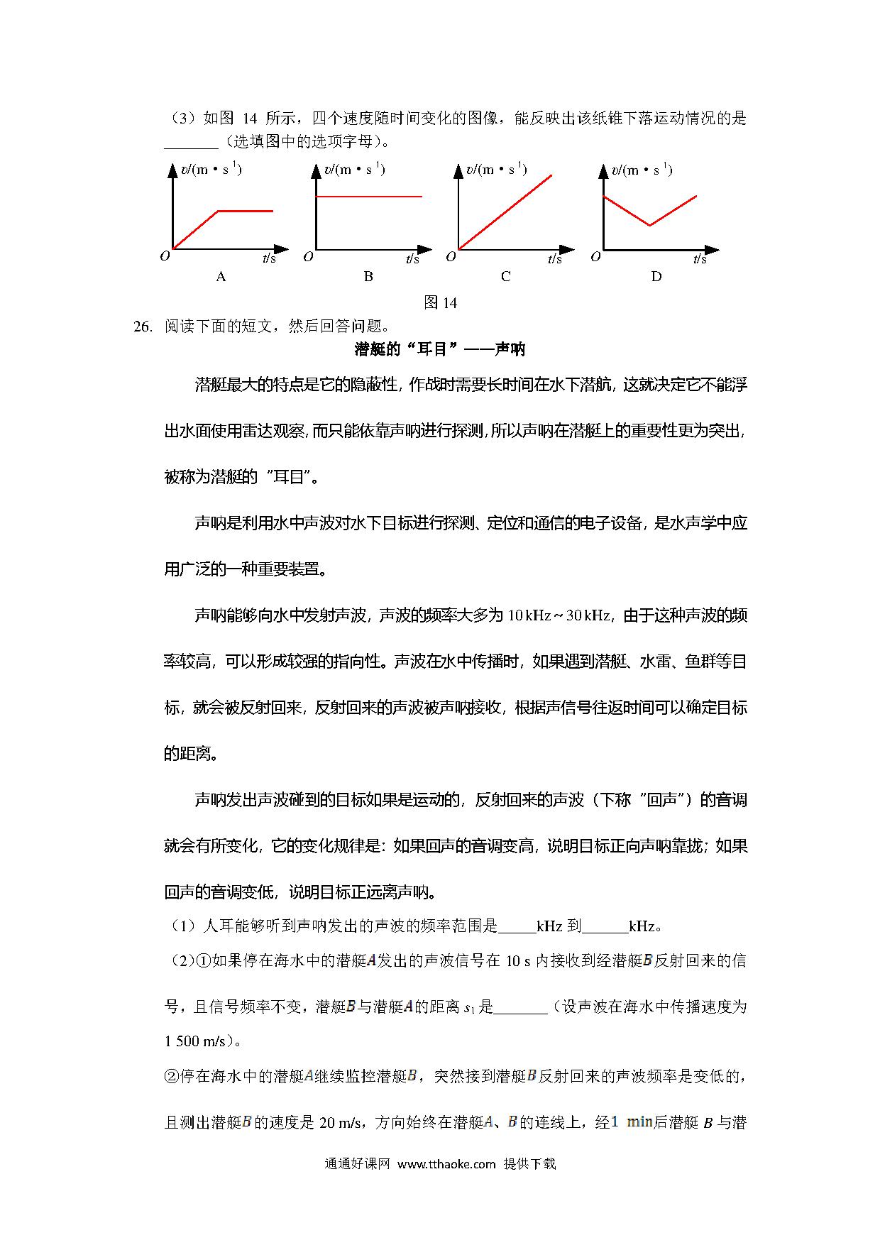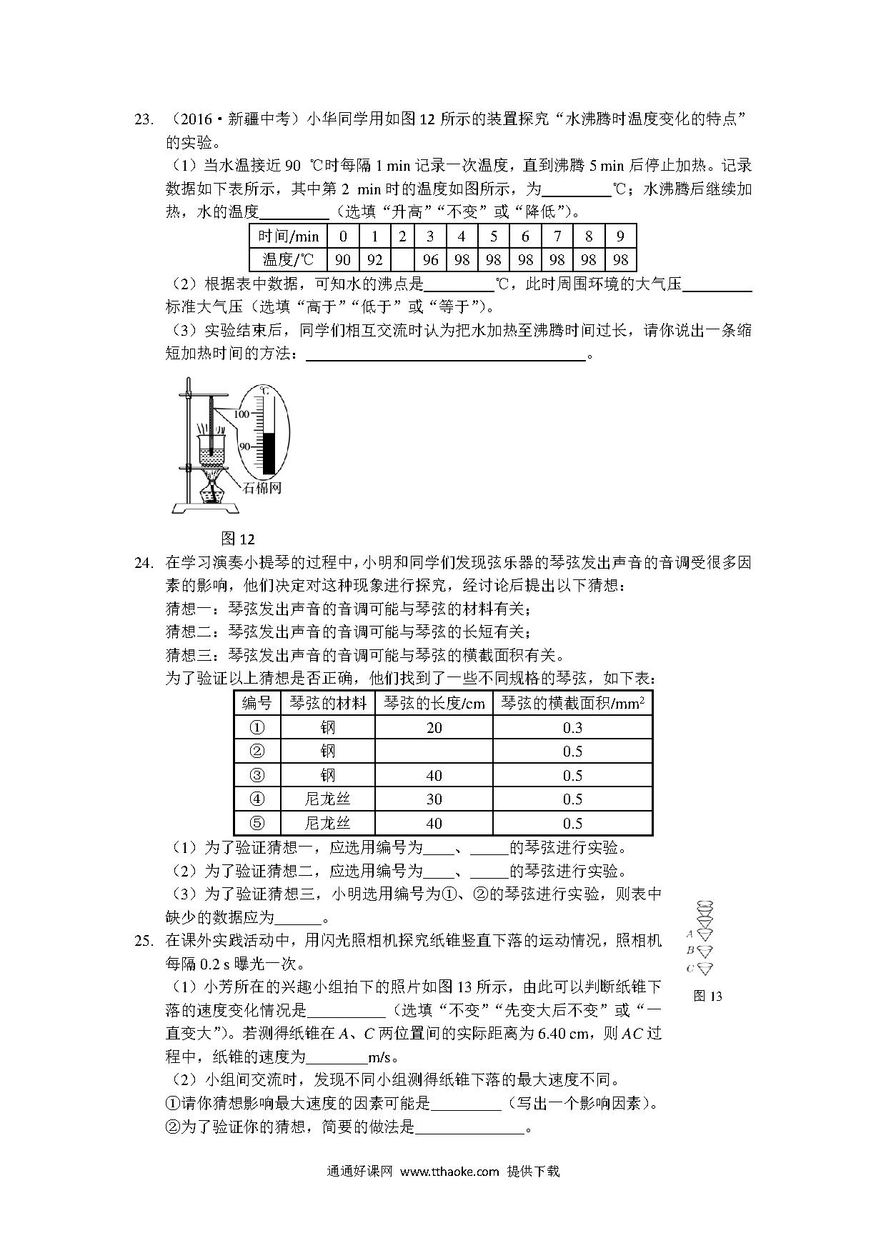 文安县2016-2017学年第二学期八年级物理期中试卷及答案