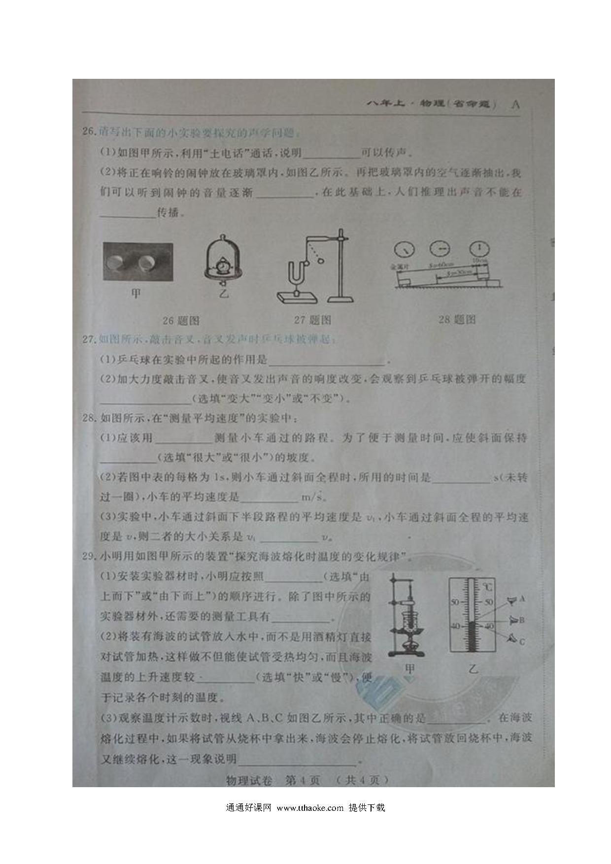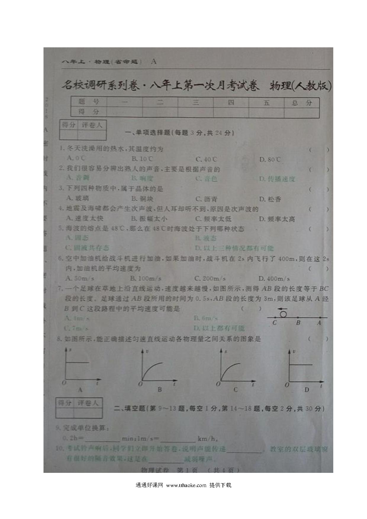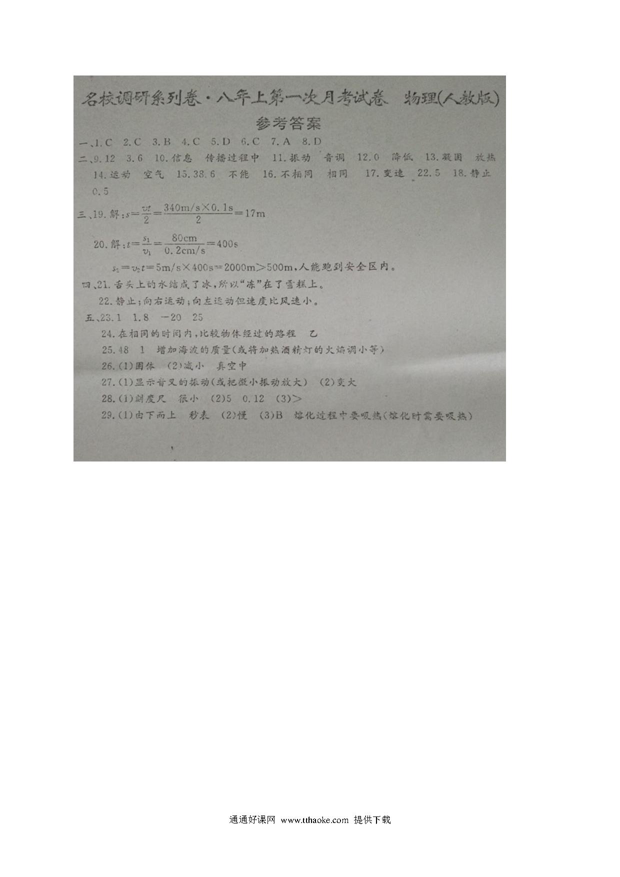 吉林名校调研(省命题)2016年八年级物理第一次月考试卷及答案.pdf