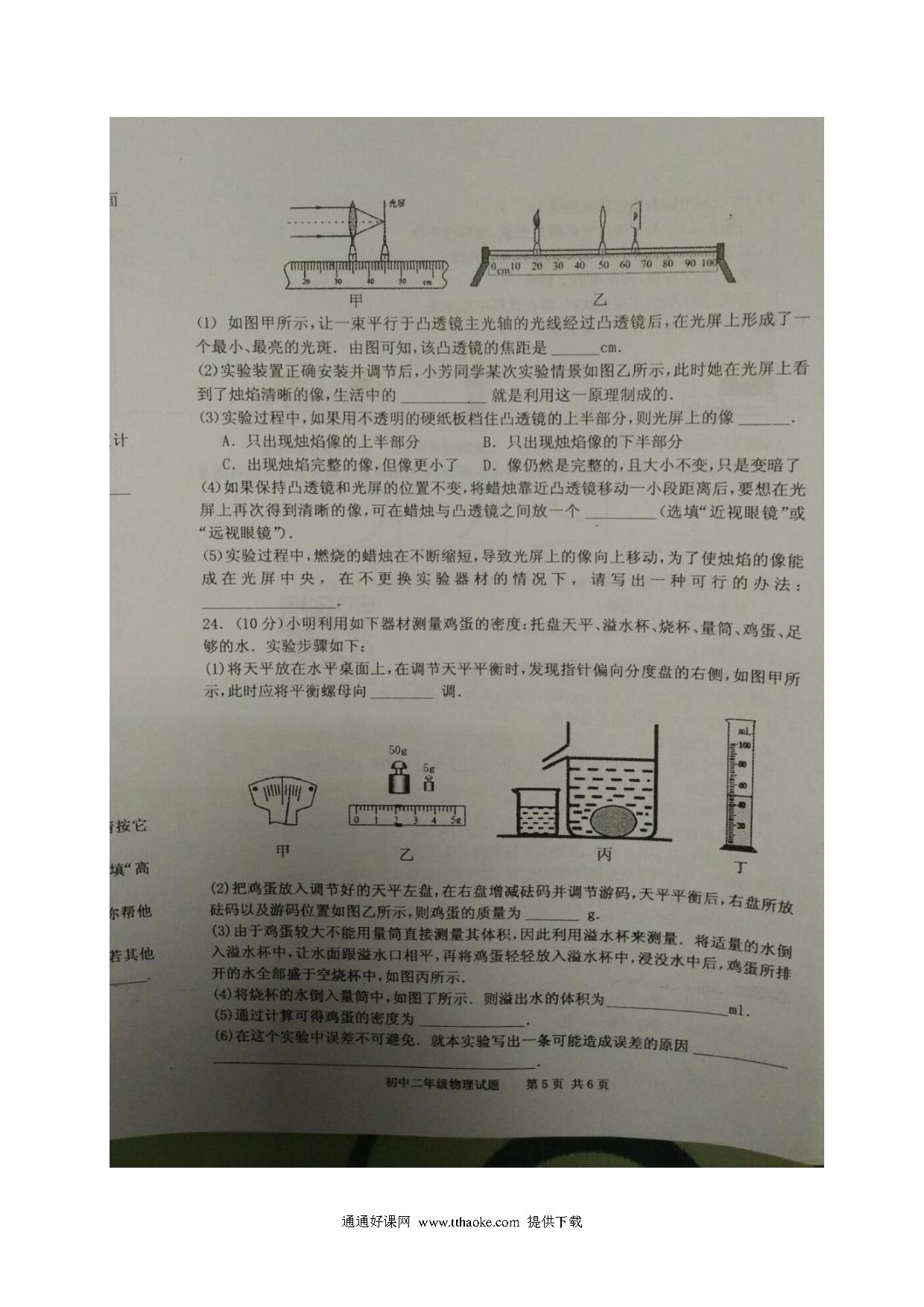 重庆江津联考2016-2017学年度下期初二物理期中试卷及答案