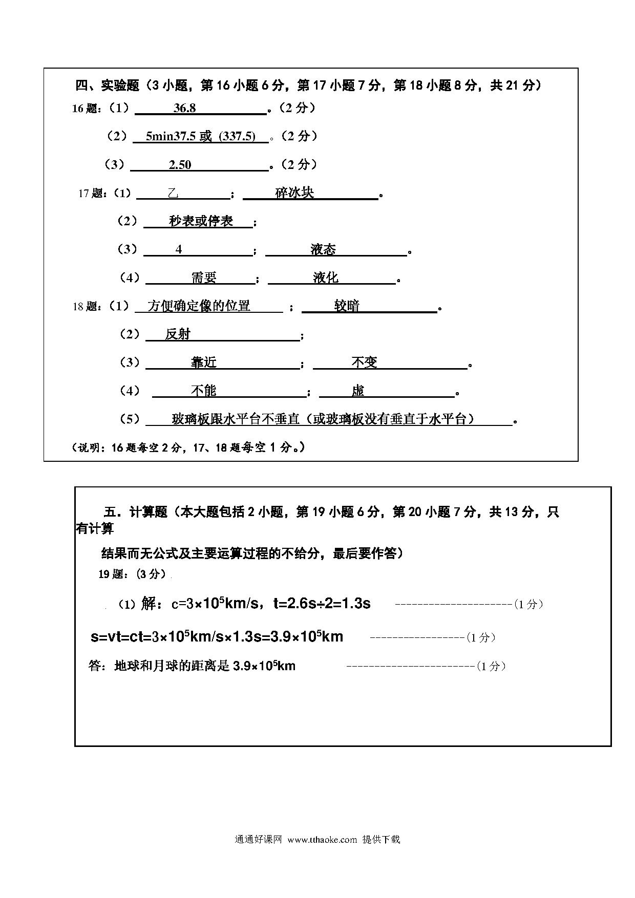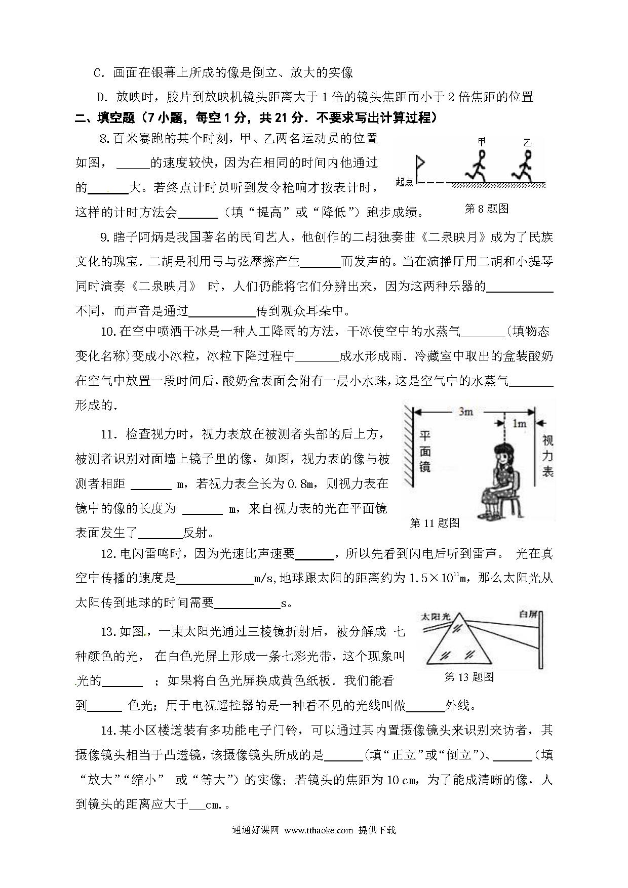 厦门市同安区016-2017学年八年级第二学期物理期中试卷及答案